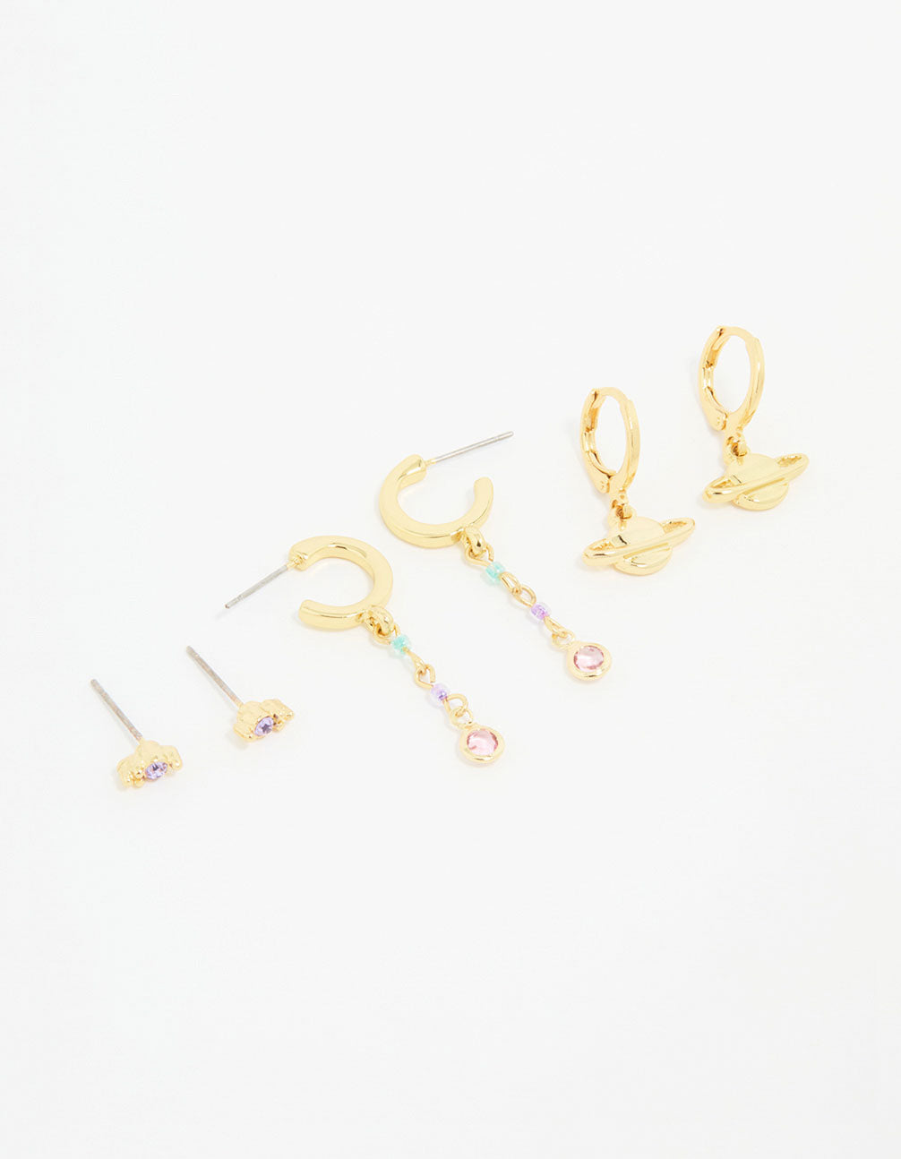 Gold Plated Cubic Zirconia Outer Space Earrings 3-Pack