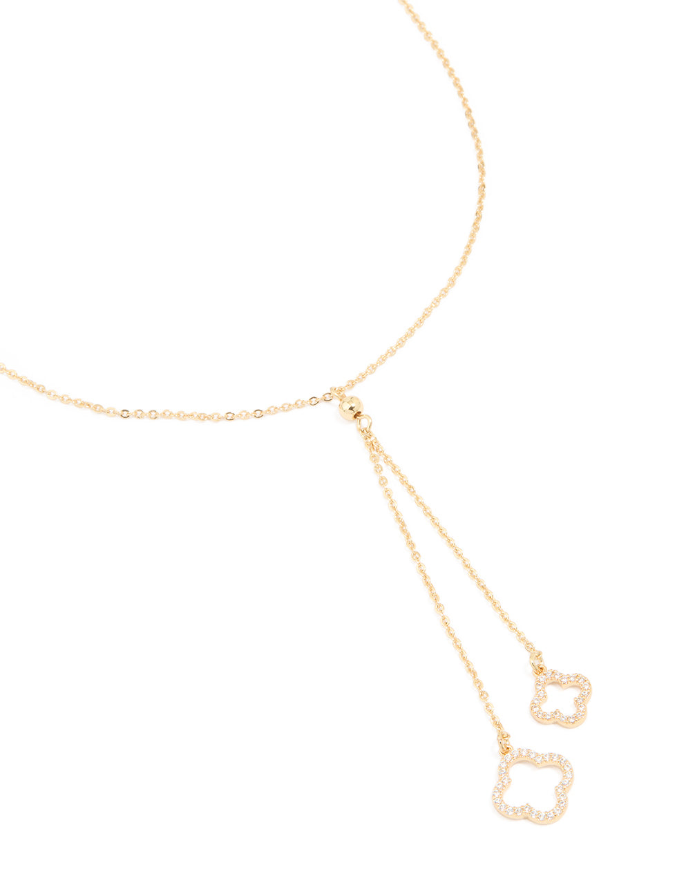 Gold Plated Cubic Zirconia Outline Flower Y-Necklace