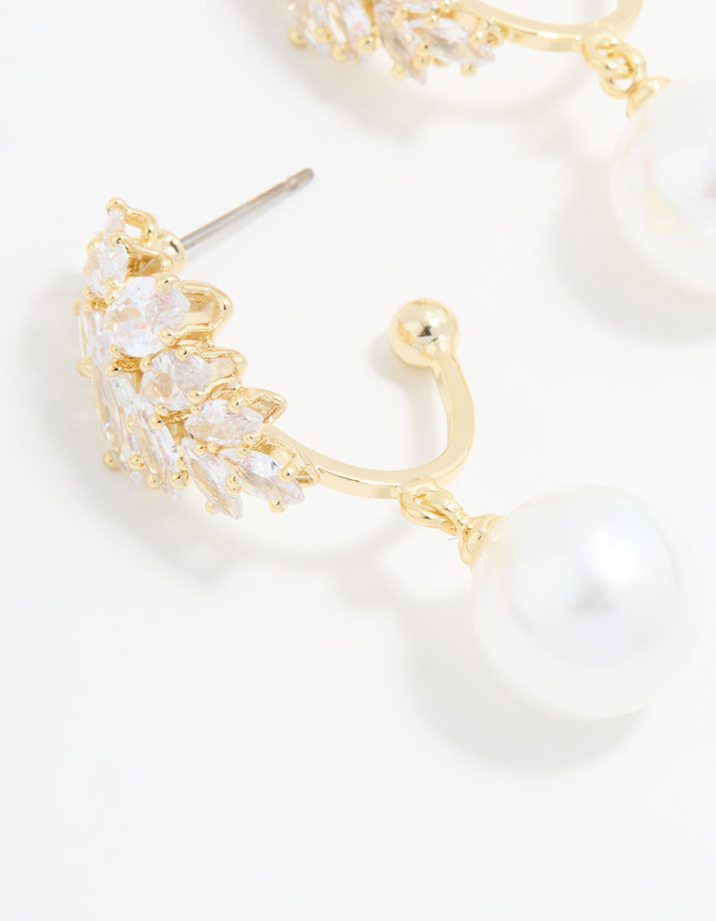Gold Plated Cubic Zirconia & Pearl Hoop Earrings