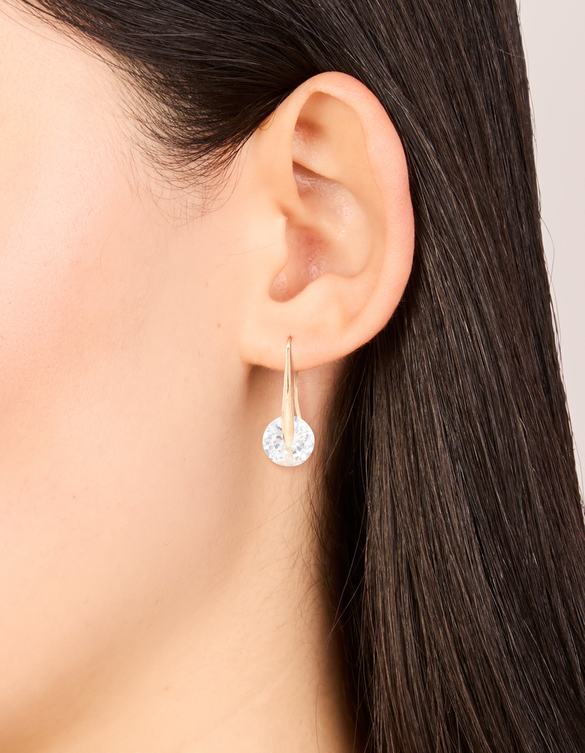 Gold Plated Cubic Zirconia Round Interlocking Hook Earrings
