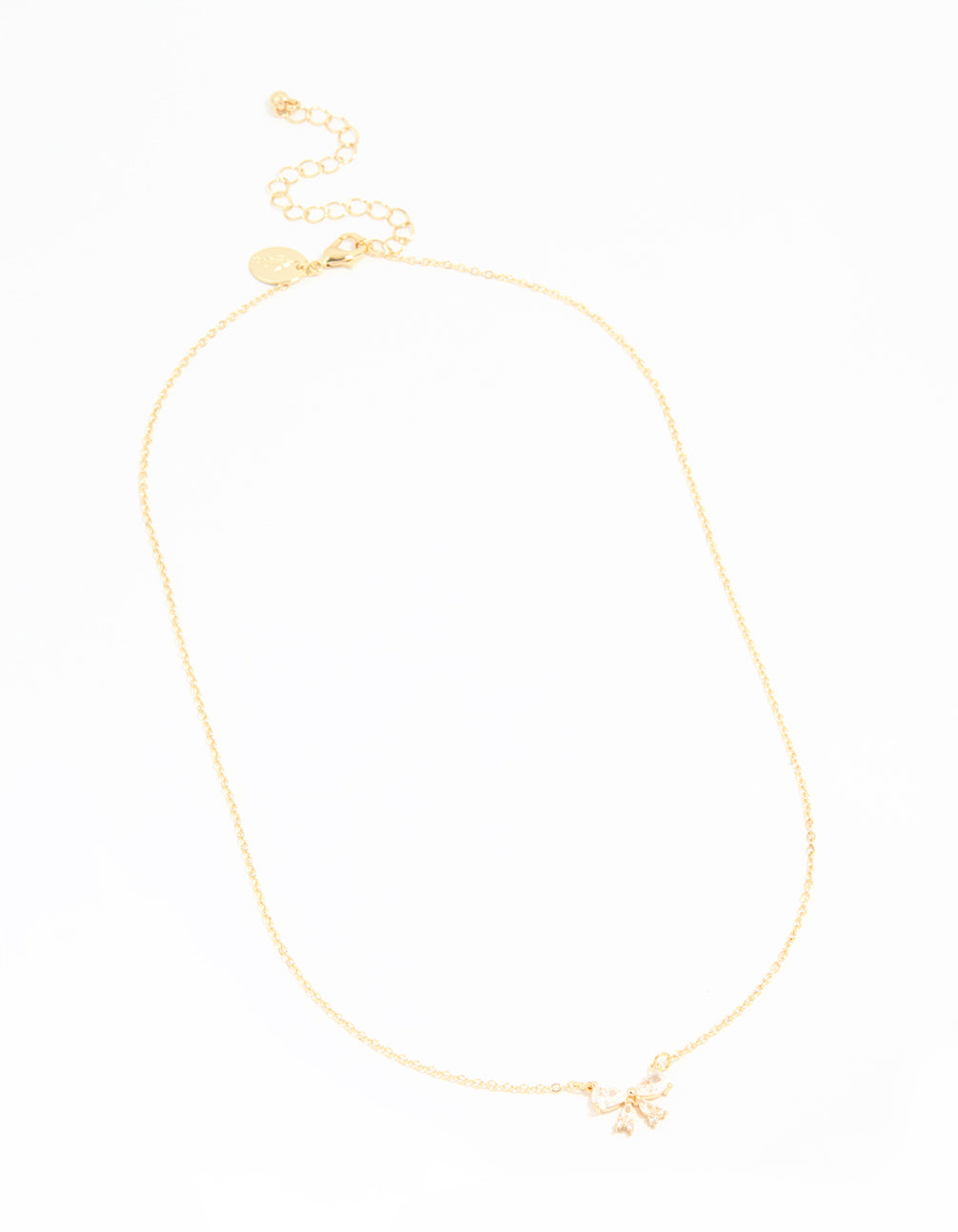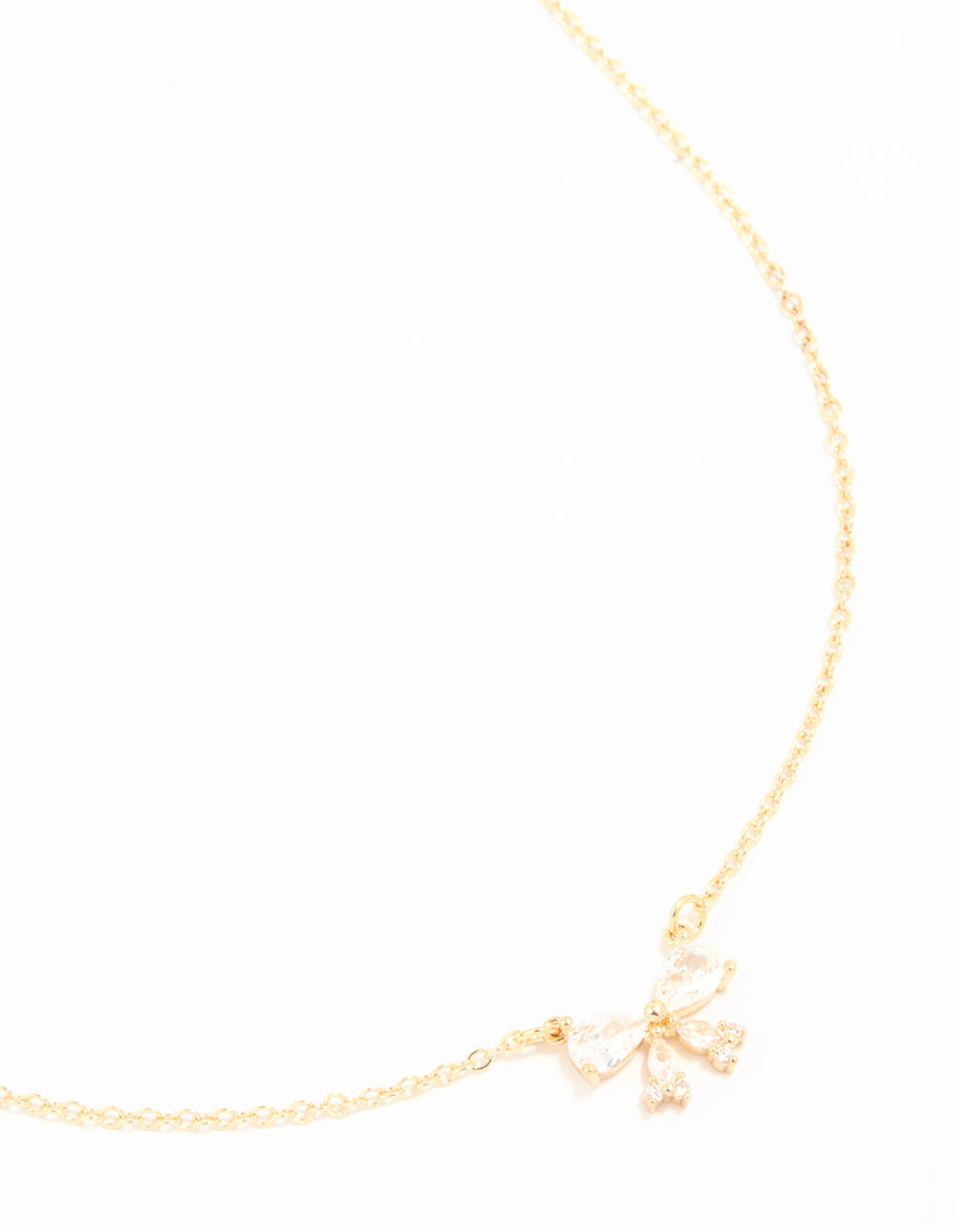 Gold Plated Cubic Zirconia Small Bow Pendant Necklace