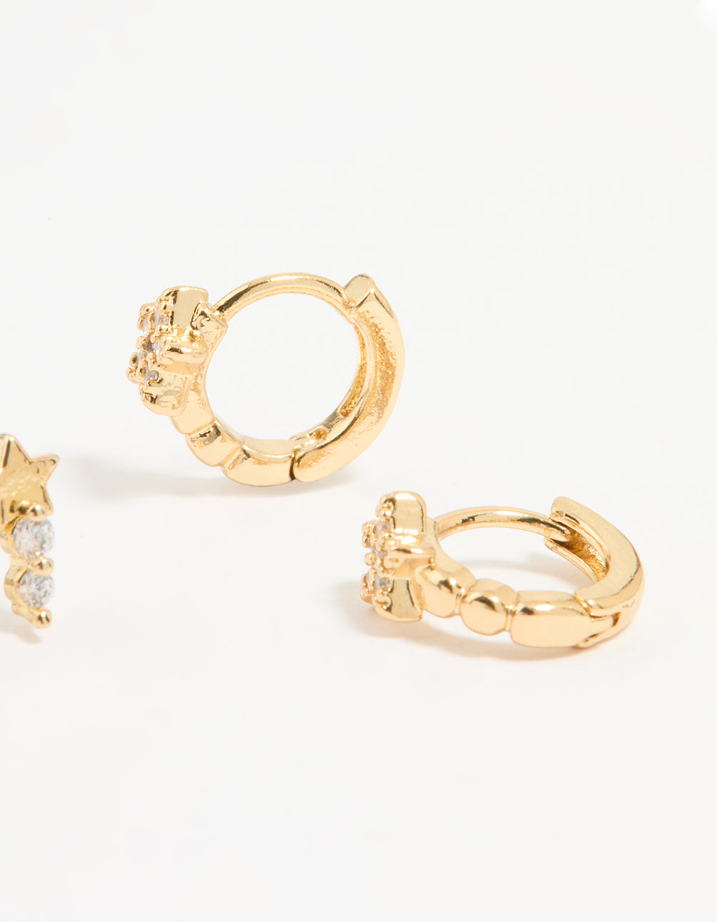 Gold Plated Cubic Zirconia Star Stud & Huggie Earrings 2-Pack