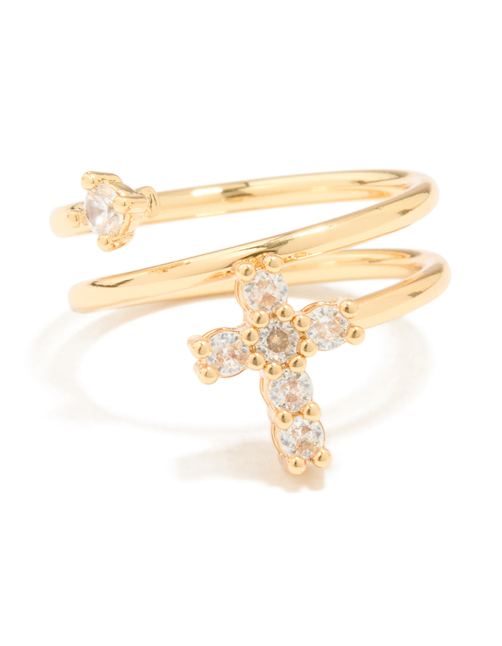 Gold Plated Cubic Zirconia Swirl Cross Ring