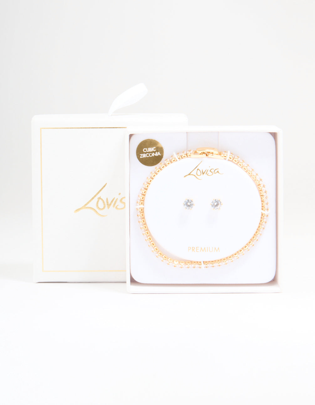 Gold Plated Cubic Zirconia Tennis Bracelet & Earrings Set