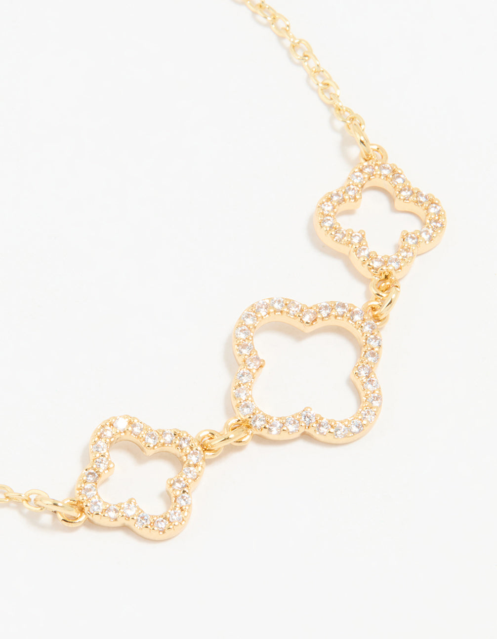 Gold Plated Cubic Zirconia Triple Flower Outline Toggle Bracelet