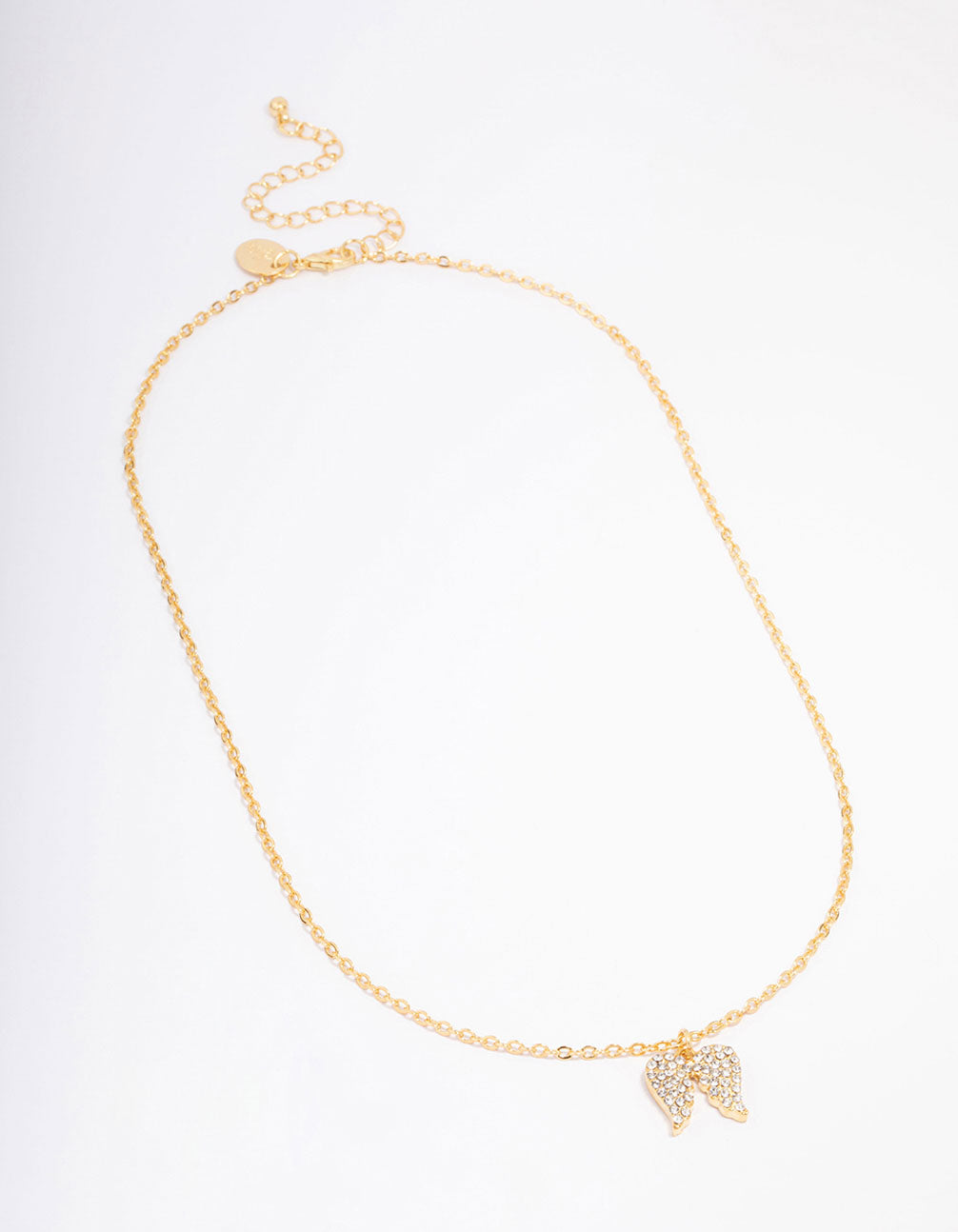 Add a hint of sparkle to your stack with this simple, gold pendant necklace. This unique pendant is plated with real gold and features a pair of angel wings, encrusted with delicate diamantes for a glamorous touch.