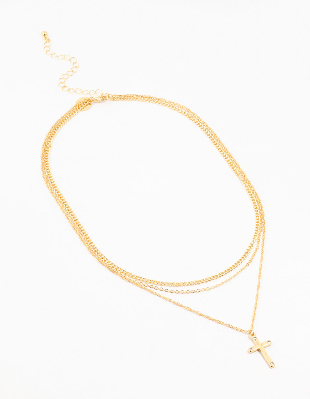 Achieve effortless cool with this trio of gold-plated necklaces. The set includes two delicate chains and a sparkling diamante cross pendant, perfect for layering and adding shine and glam to any outfit.