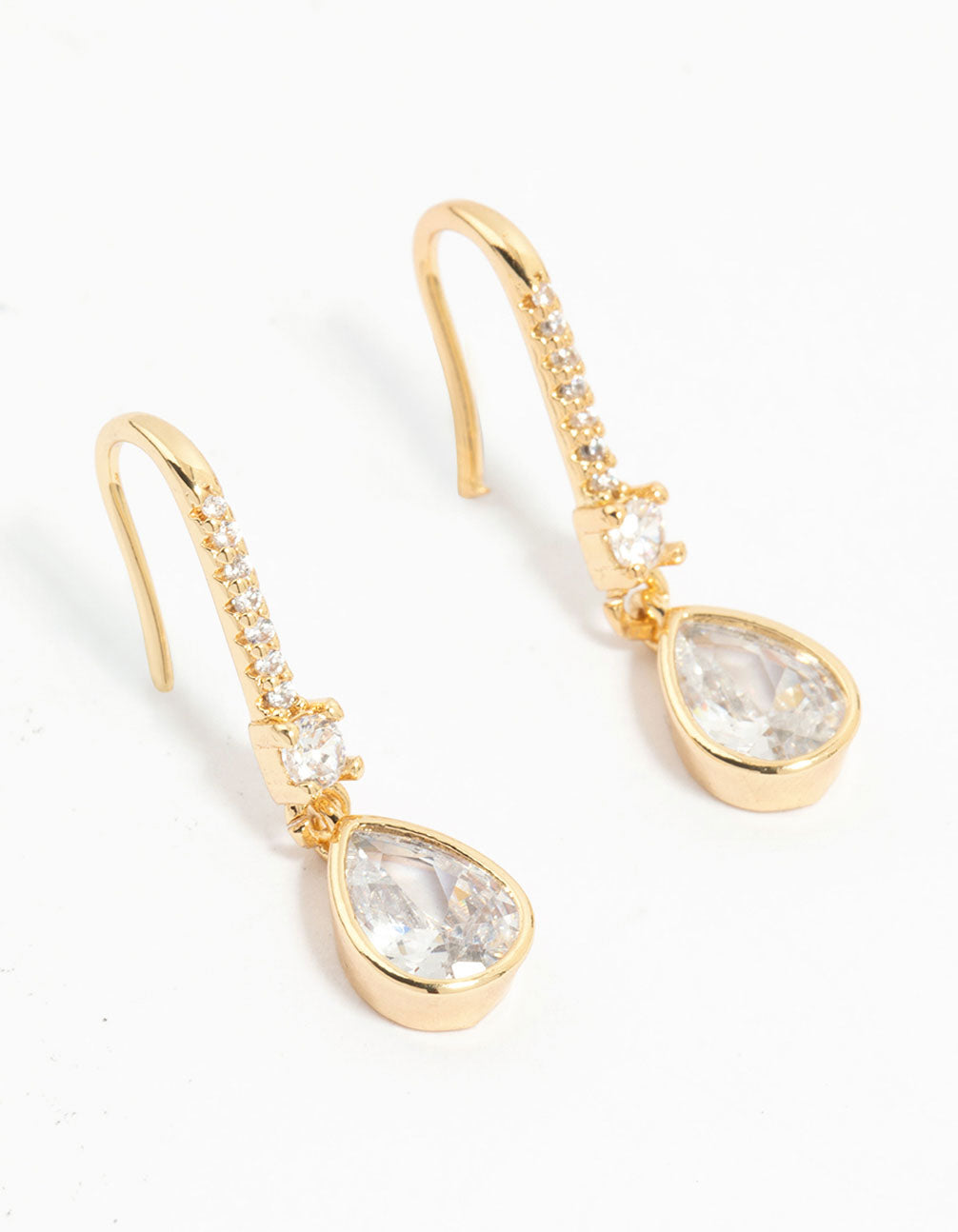 Add some dazzling sparkle with these gold-plated hook earrings! Featuring pear-shaped diamante drops and pave set hooks, they're perfect for maximum glam.