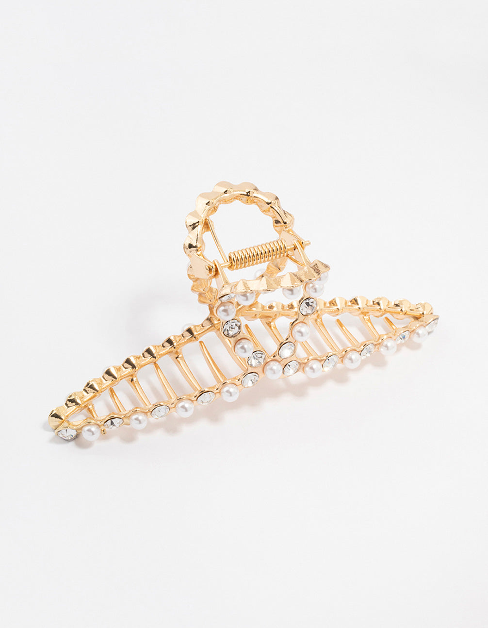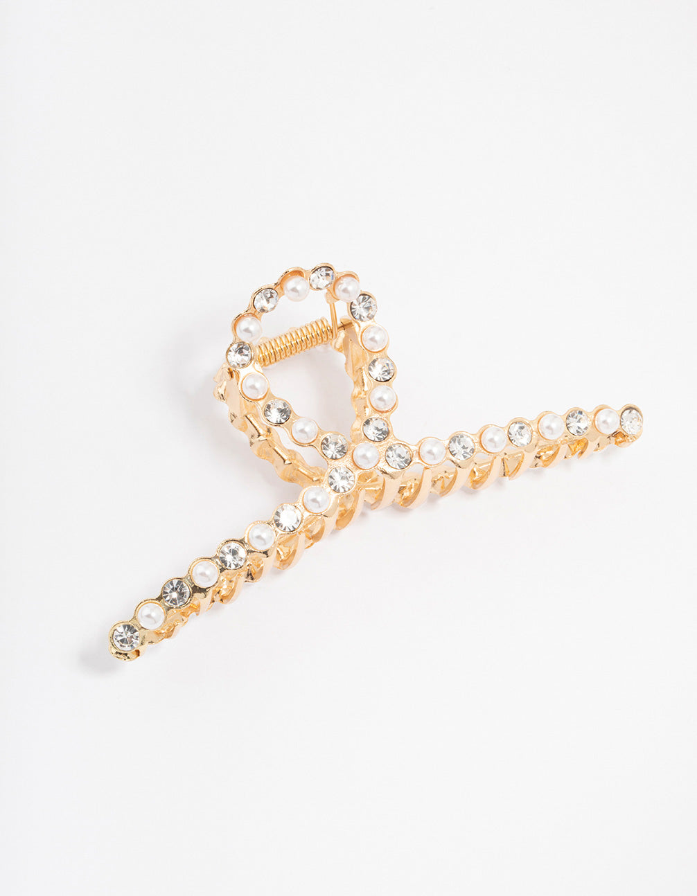 Gold Plated Diamante & Pearl Twisted Claw Clip