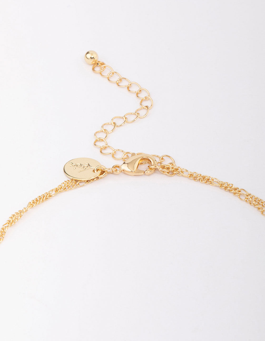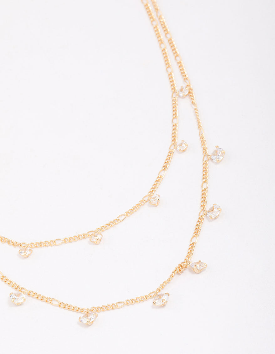 Gold Plated Brass Double Cubic Zirconia Droplet Layered Necklace