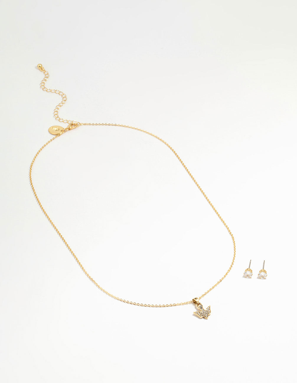 Gold Plated Dove Pendant Necklace & Stud Earrings Set