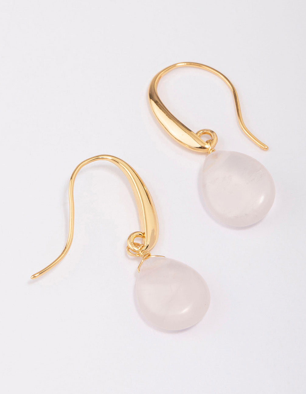 Gold Plated Droplet Rose Quartz Drop Earrings
