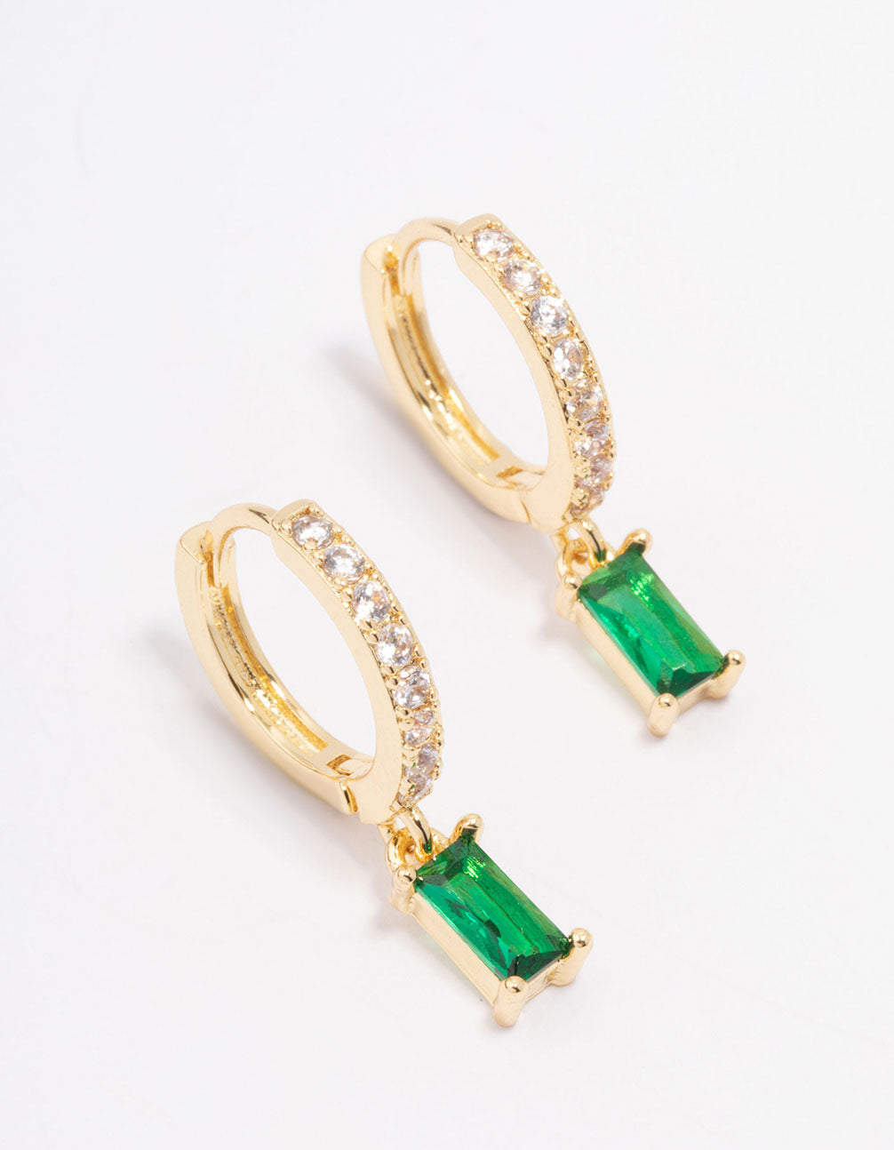 Gold Plated Emerald Cubic Zirconia Baguette Hoop Earrings Gold Plated Emerald Cubic Zirconia Baguette Hoop Earrings Gold Plated Emerald Cubic Zirconia Baguette Hoop Earrings