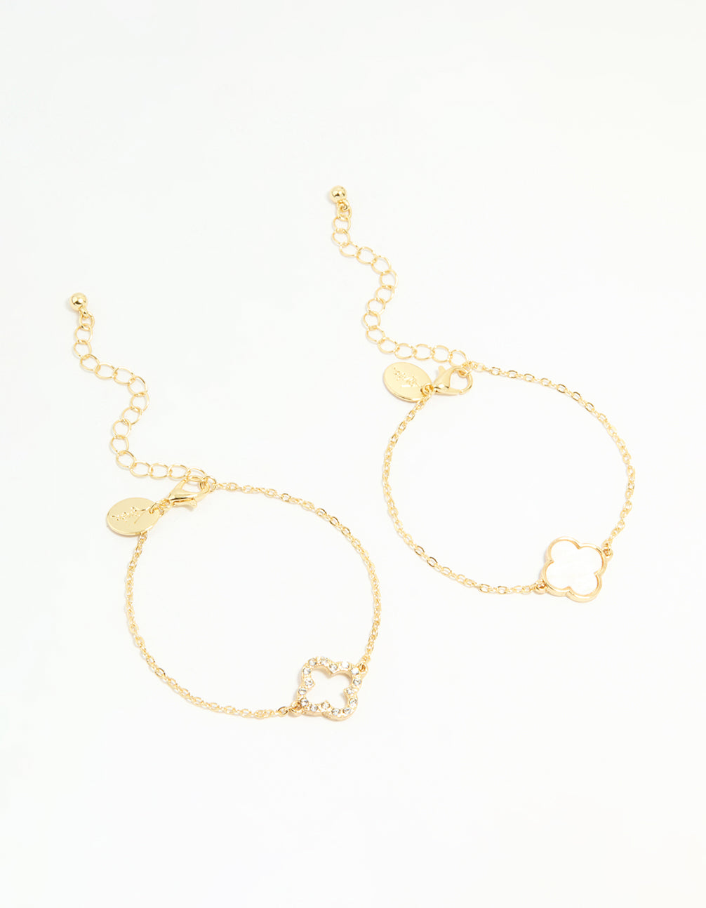 Treat Mum to a touch of elegance with this Gold Plated Flower Bracelets Pack, the perfect gift for Mother's Day! Featuring two bracelets with delicate floral designs and a radiant gold plating, these stylish bracelets are ideal for celebrating Mum in style. Whether she's dressing up for a special occasion or adding a chic touch to her everyday outfits, these wristwear pieces are versatile and timeless. Pair them with a flowy dress for a sophisticated look or stack them with other jewellery for a stylish vibe. Thoughtfully designed, these bracelets are a meaningful way to show her just how much she's loved!