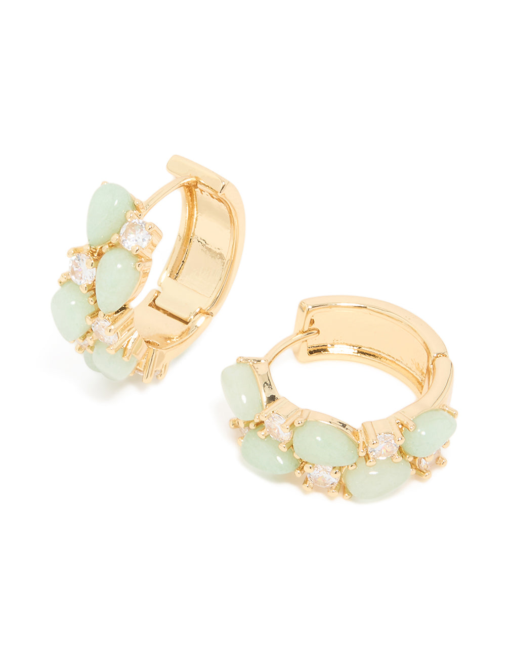 Gold Plated Green Semi Precious Stone & Cubic Zirconia Hoop Earrings