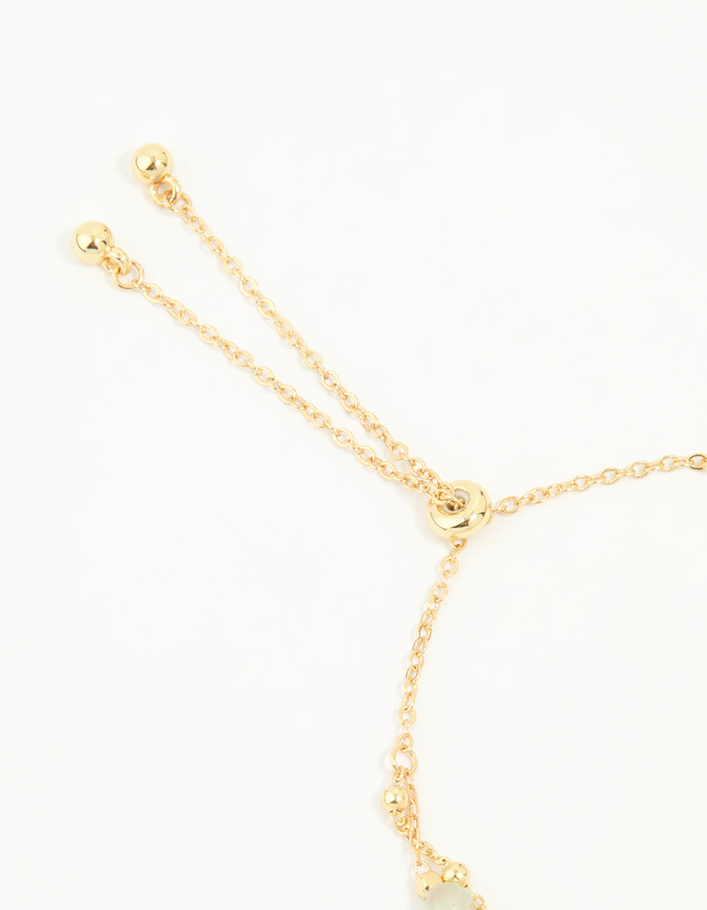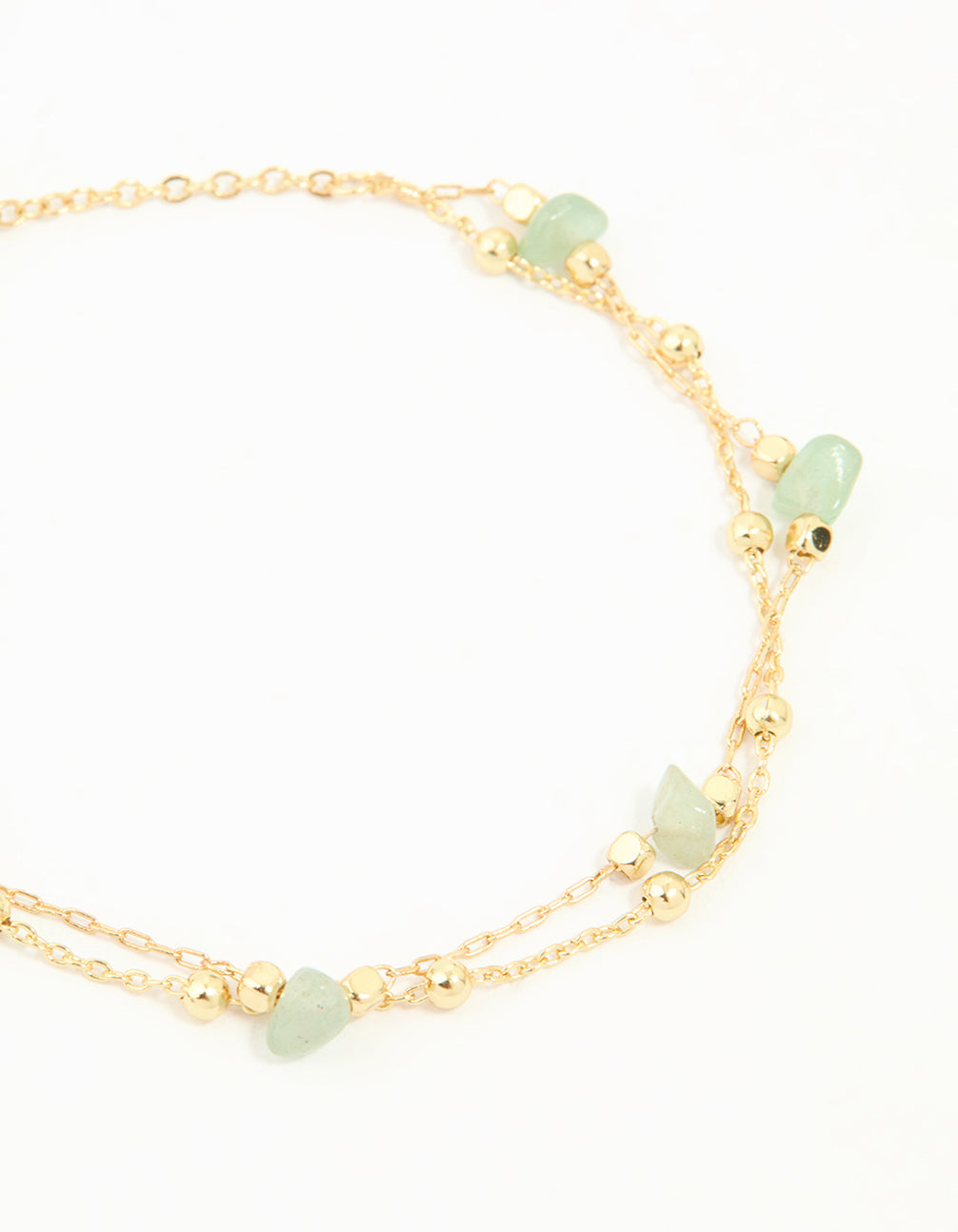 Gold Plated Green Semi Precious Stone Layered Toggle Bracelet
