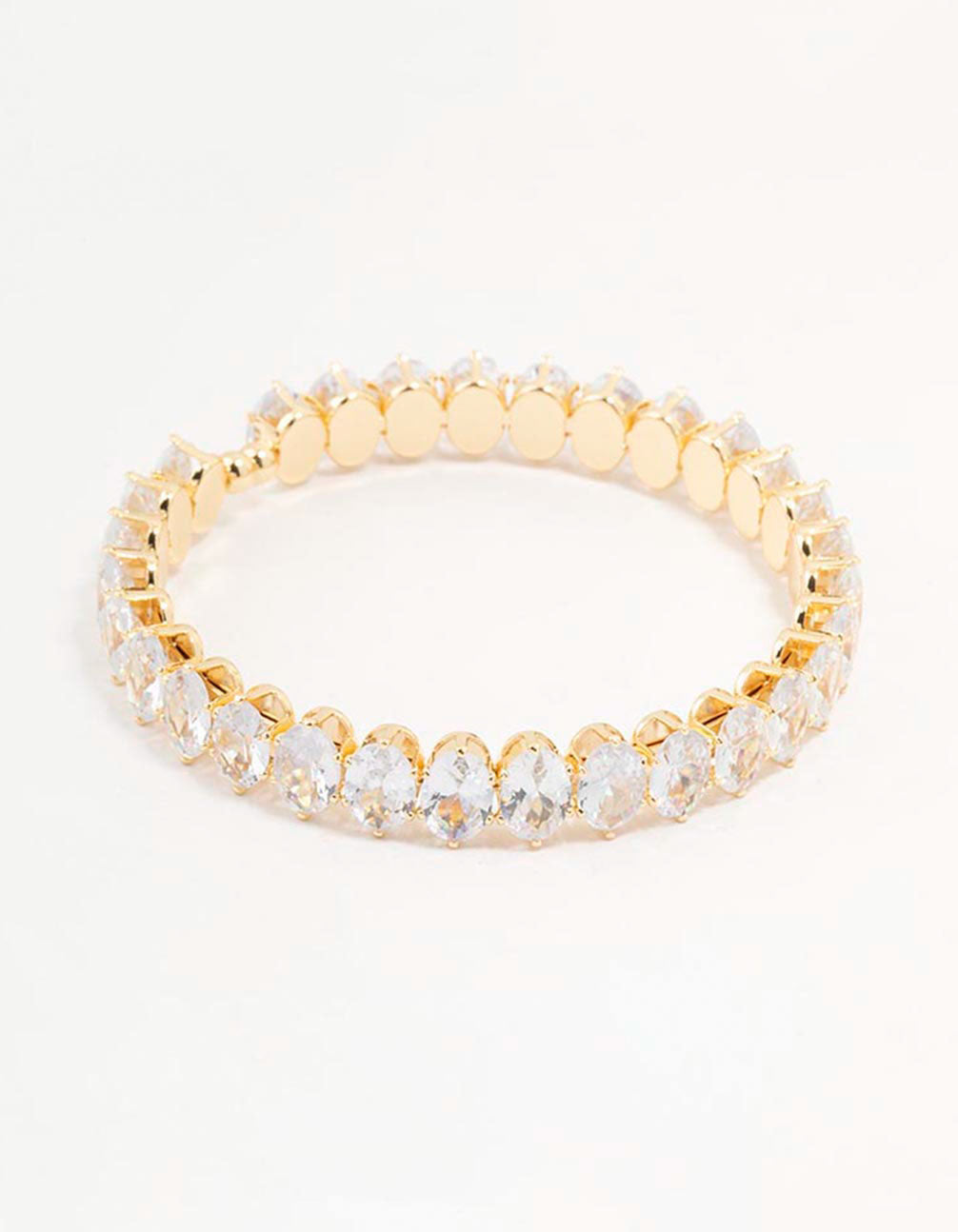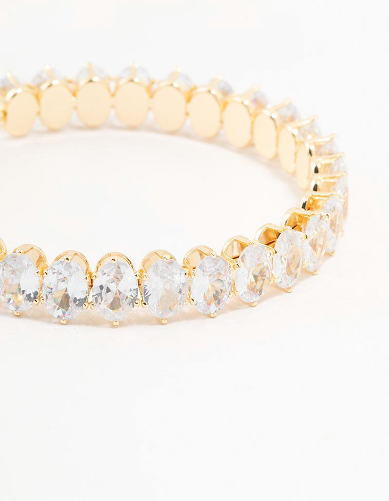 This elegant gold cuff bracelet features a large oval station design that wraps comfortably and stylishly around the wrist. The bracelet is crafted from high quality gold metal in a sleek and timeless design that will complement any outfit and add luxury to any ensemble. It makes a perfect gift for yourself or a loved one, providing beauty and sophistication with every wear.