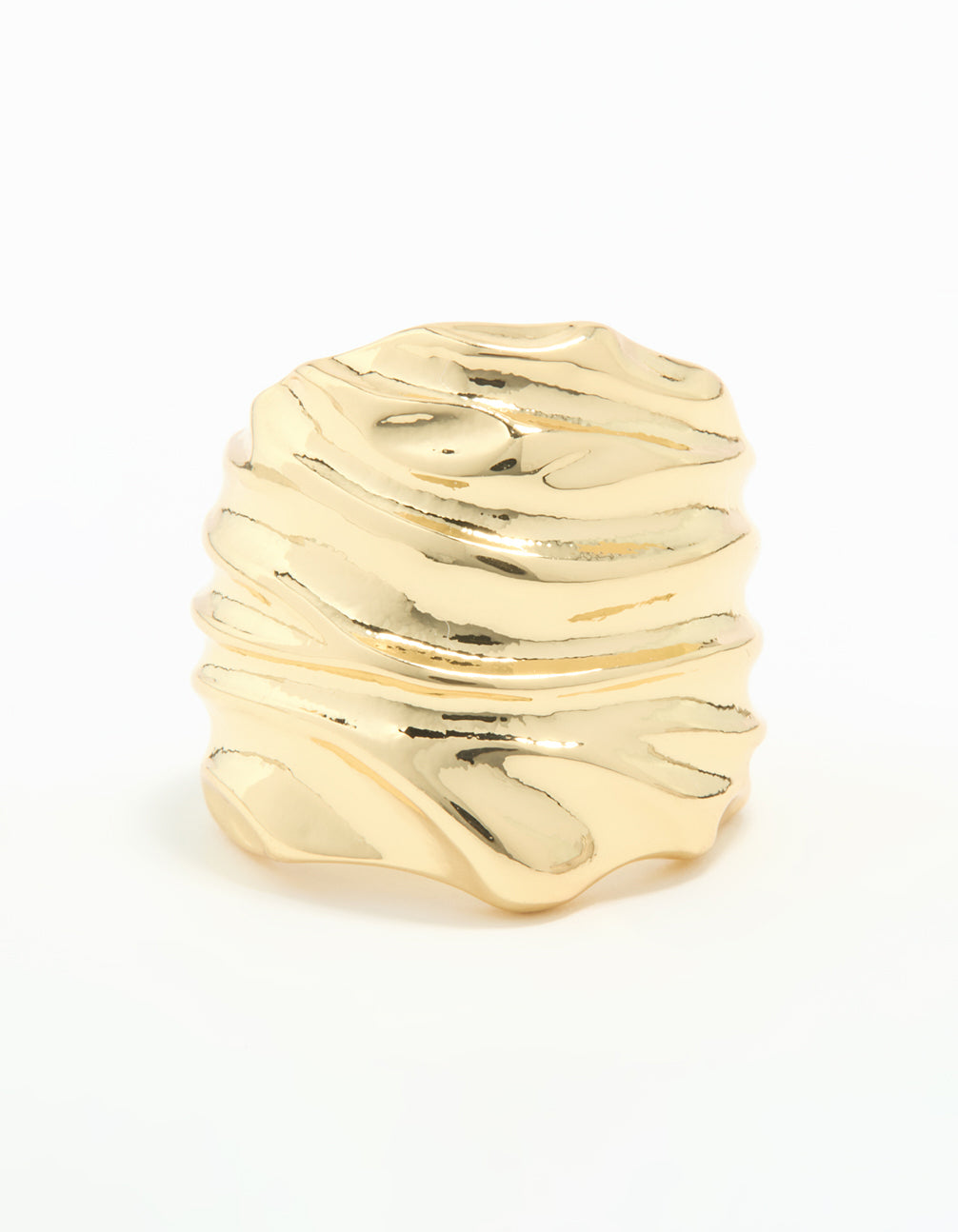 Elevate your jewellery game with this Gold Plated Molten Face Ring. Crafted from gold-plated metal, this striking piece features a molten texture design that adds an artistic, modern edge to your look. Whether you're dressing up for a night out or adding flair to a casual ensemble, this ring is versatile enough to complement any outfit. Wear it solo for a minimalist vibe or pair it with other gold rings for a stylish stacked look. Ideal for anyone who loves distinctive gold jewellery and rings, the molten finish gives it a contemporary yet timeless appeal. Perfect for parties, brunches, or even a day at the office, this eye-catching ring is your new go-to accessory for effortless style.