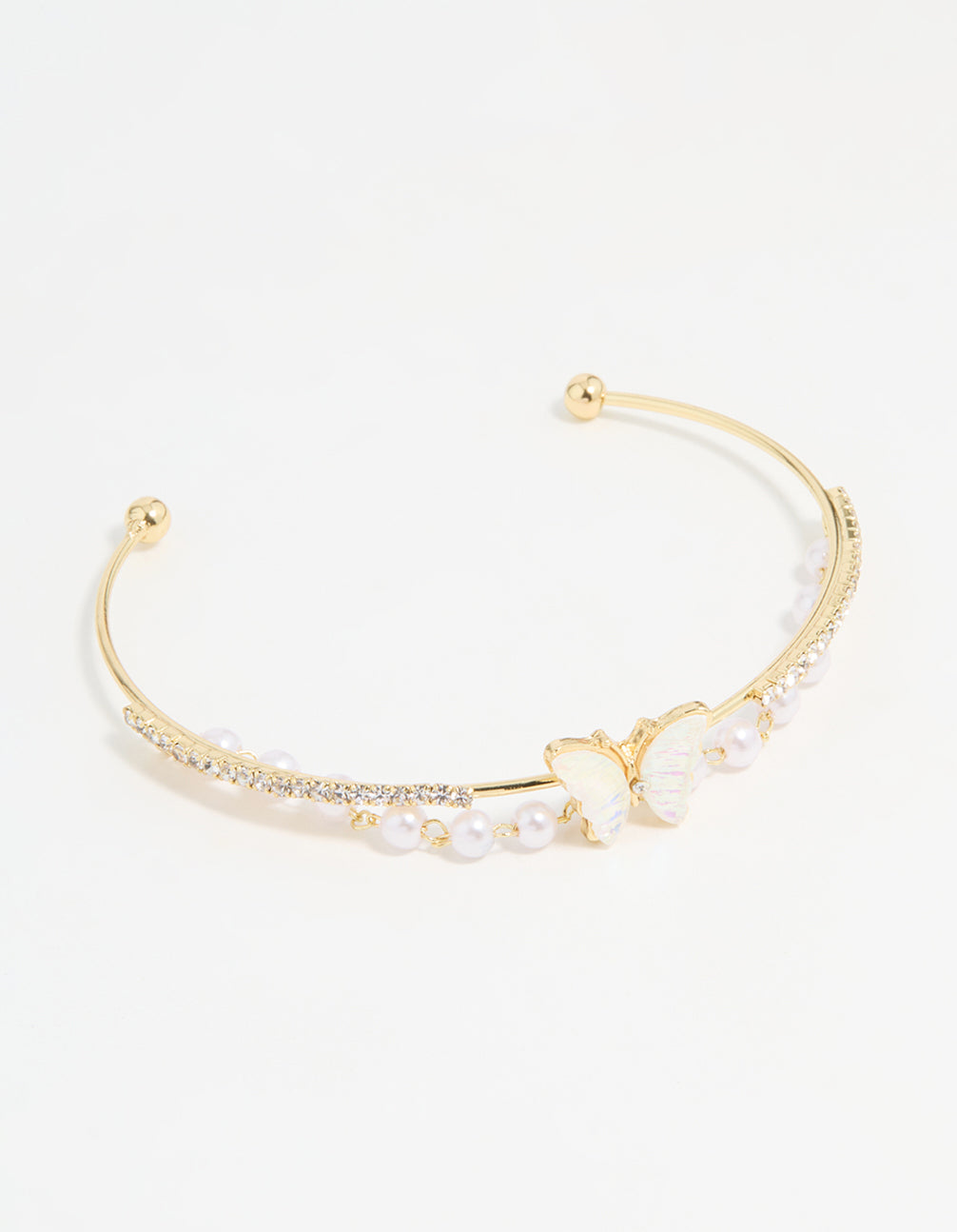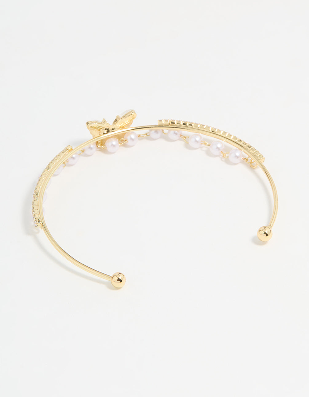 Gold Plated Mother Of Pearl Butterfly & Pearl Wrist Cuff