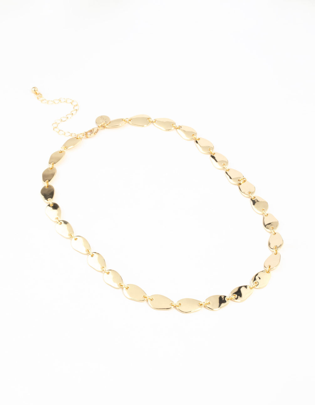Enhance your necklace collection with a beautifully understated statement piece. This necklace is made from gold-plated metal and features sleek oval discs linked together for a timeless and stylish look.