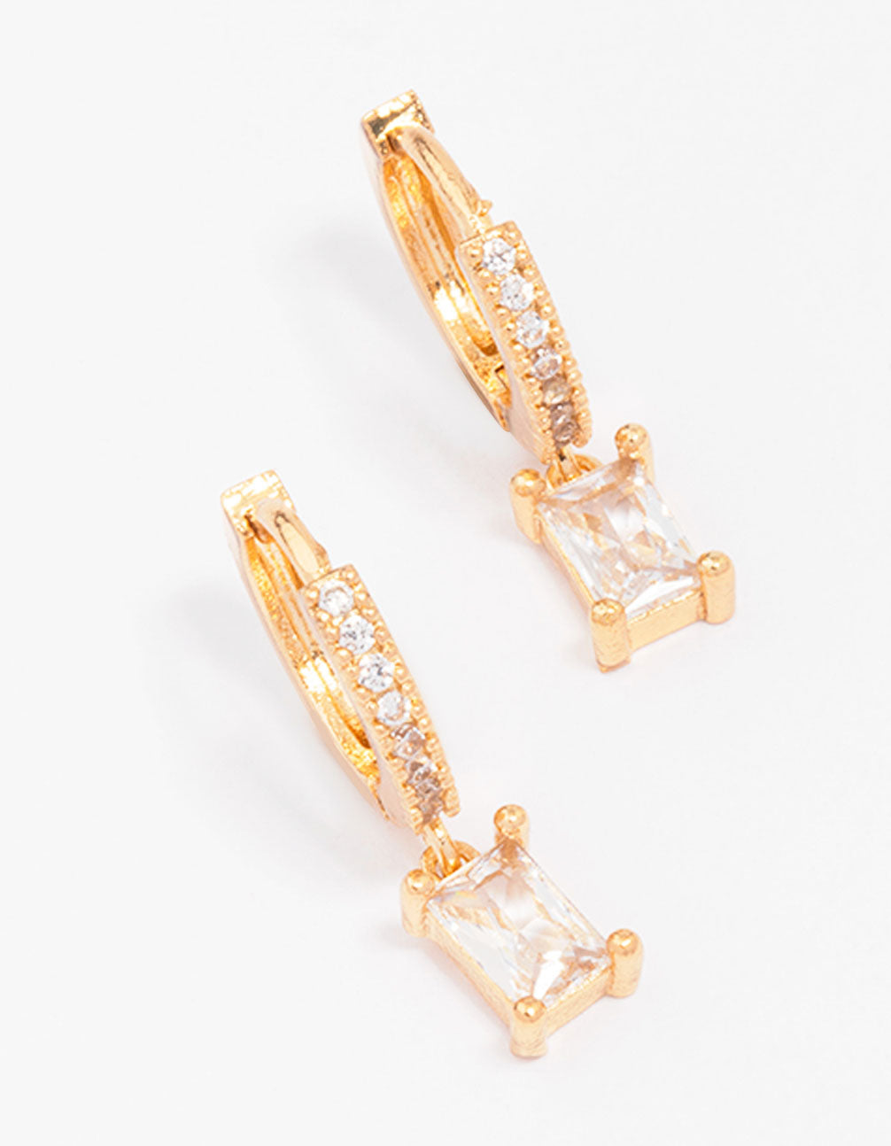 Gold Plated Pave Baguette Huggie Hoop Earrings
