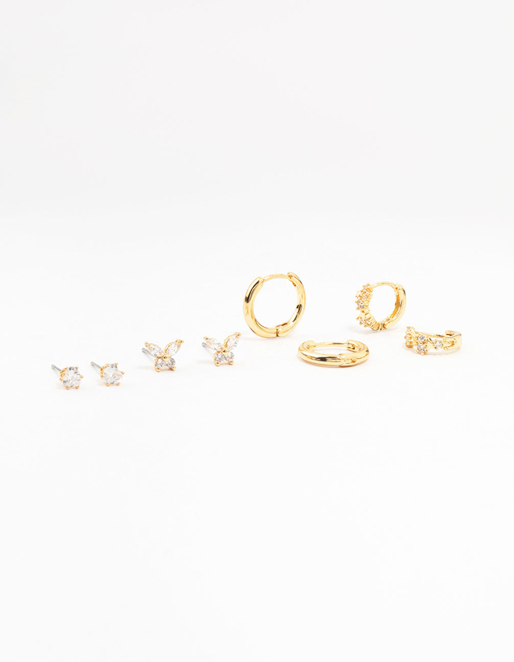 Everything is better in a set. Take this stackable earring set for example, it features four pairs of gold plated brass earrings with different pave, star and butterfly designs, allowing you to mix and match to create multiple layered looks depending on the vibe you want to achieve on the day.