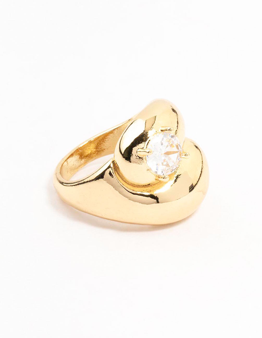 Gold Plated Puffy Swirl Cubic Zirconia Rings