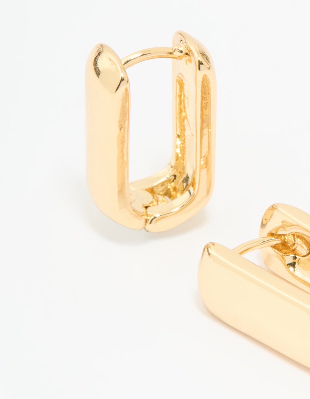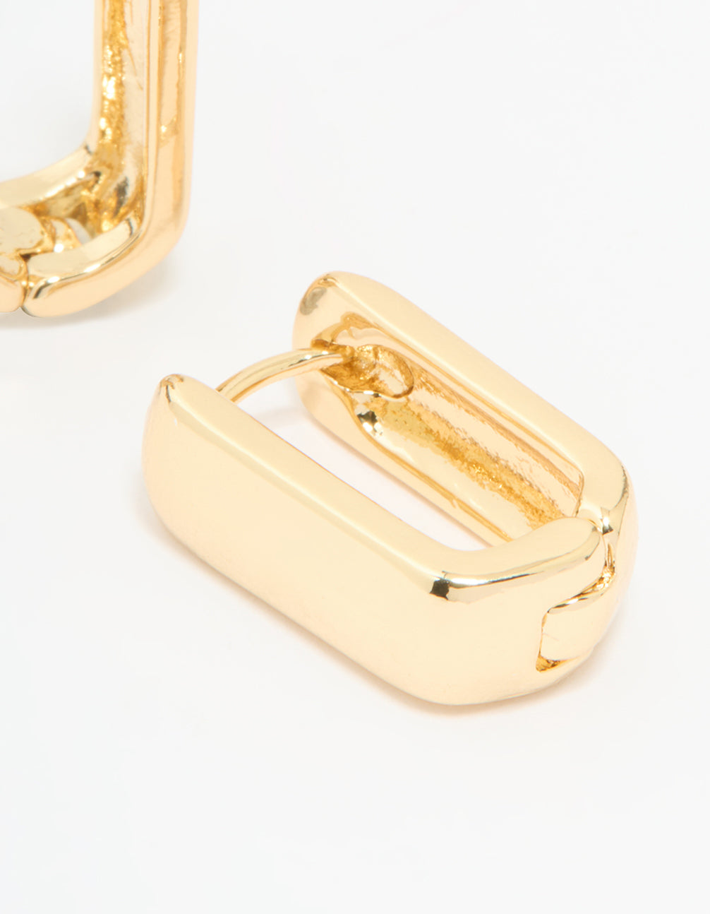Add a splash of elegance to your jewellery collection with these Gold Plated Small Rectangle Huggie Earrings. These stylish huggie earrings feature a sleek rectangular shape and a luxurious gold plating, perfect for anyone who loves timeless yet versatile accessories. Lightweight and easy to wear, they're ideal for both everyday outfits and special occasions. Pair these small gold hoops with casual denim for a laid-back look or dress them up with a chic blazer for a polished vibe.
