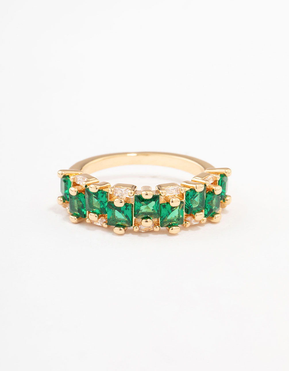 This eye-catching ring is plated with gold and features a cluster of emerald-coloured, cubic zirconia crystals for a pop of colour.