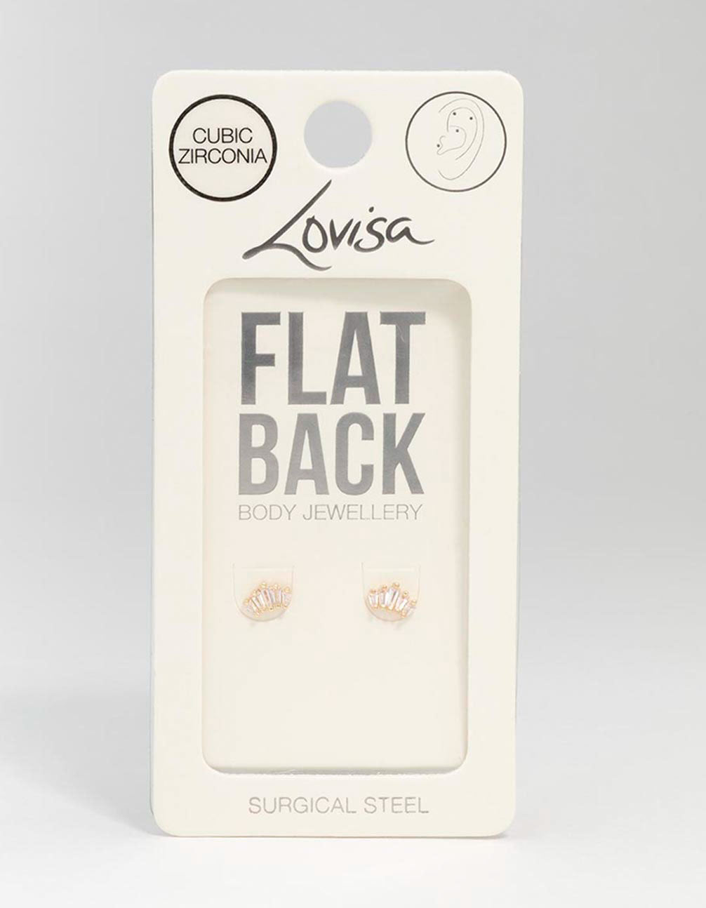 Sparkle in style with this set of two gold-plated baguette crown flat back earrings! Featuring stunning baguette cut stones that reflect light beautifully, they offer glamorous shine and are designed for everyday comfort with a secure flat back fit.