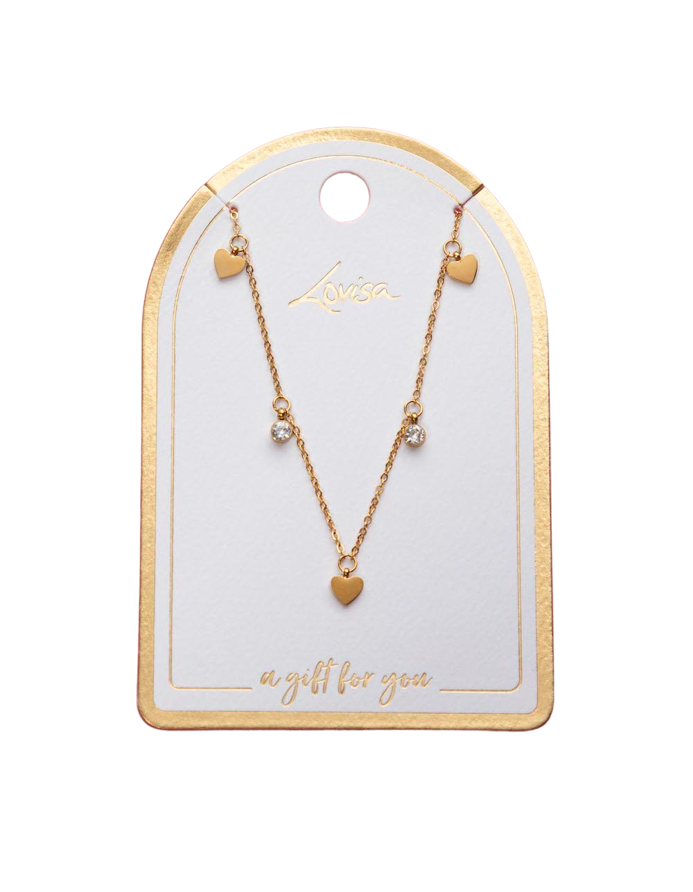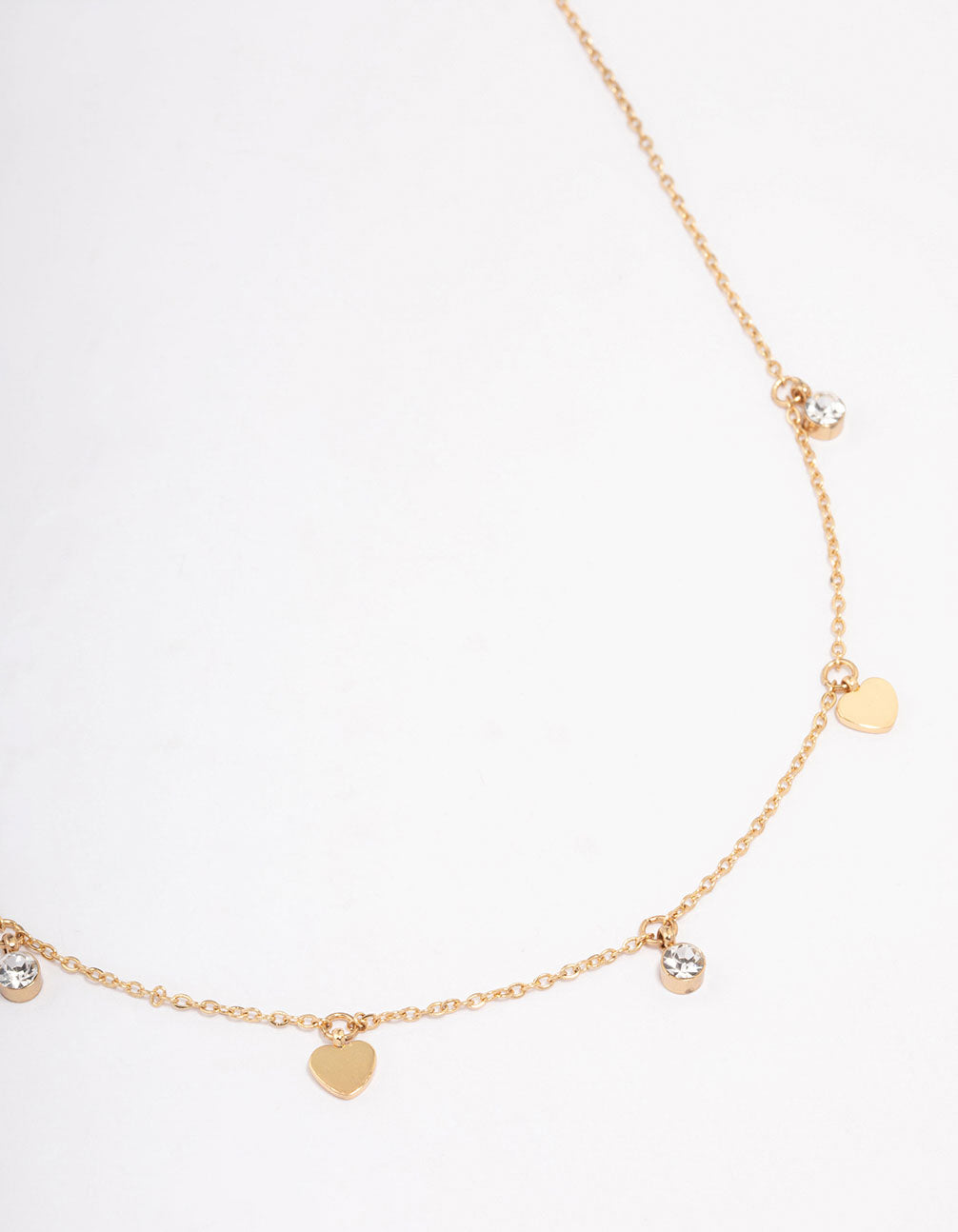 Gold Plated Stainless Steel Diamante & Heart Necklace