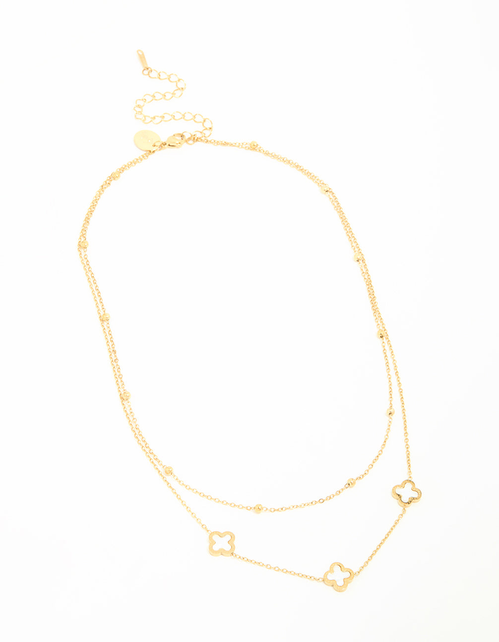 Add charm to your jewellery collection with this Waterproof Gold Plated Stainless Steel Flower Layered Necklace. This layered necklace features delicate flower details, making it a perfect mix of style and quality.