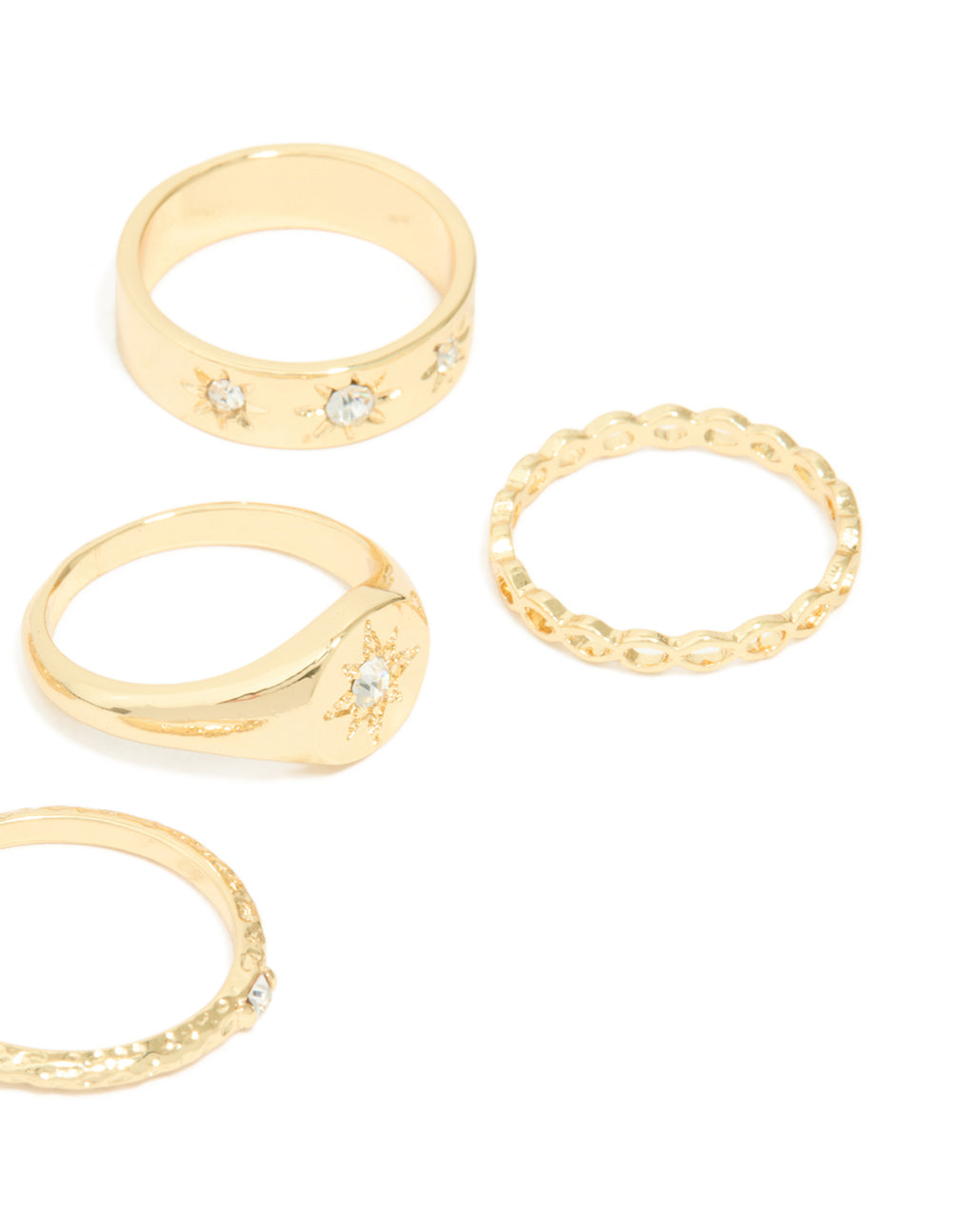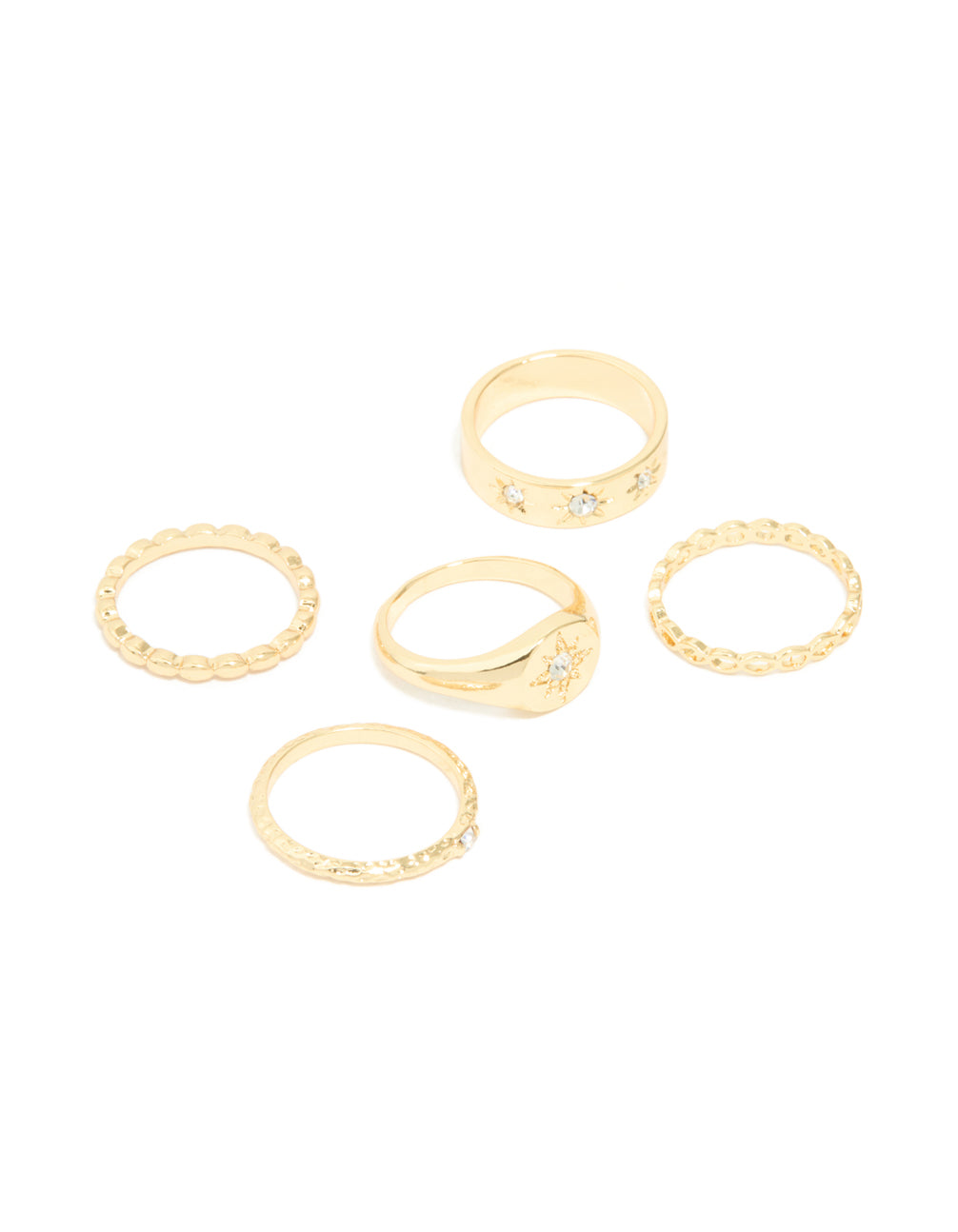 Gold Plated Star Stamped Signet & Textured Rings 5-Pack
