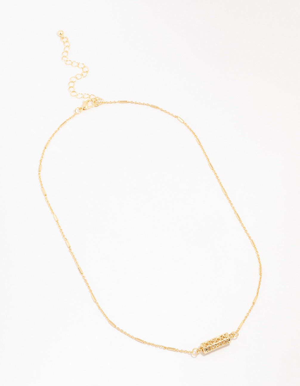 For a signature addition to your look, style this classic gold plated brass pendant necklace. Designed with a barrell charm for a classic touch.