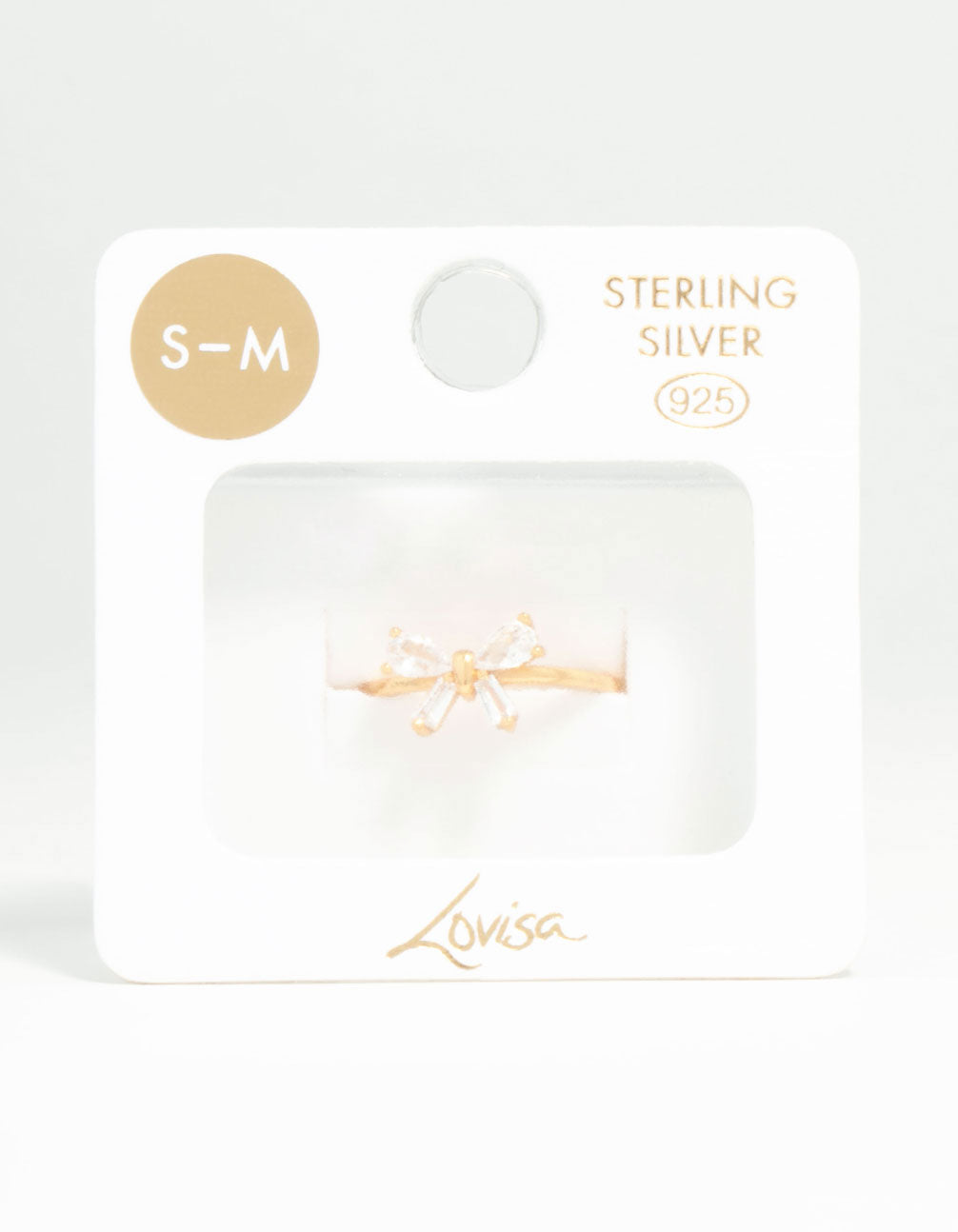 Gold Plated Sterling Silver Cubic Zirconia Bow Ring