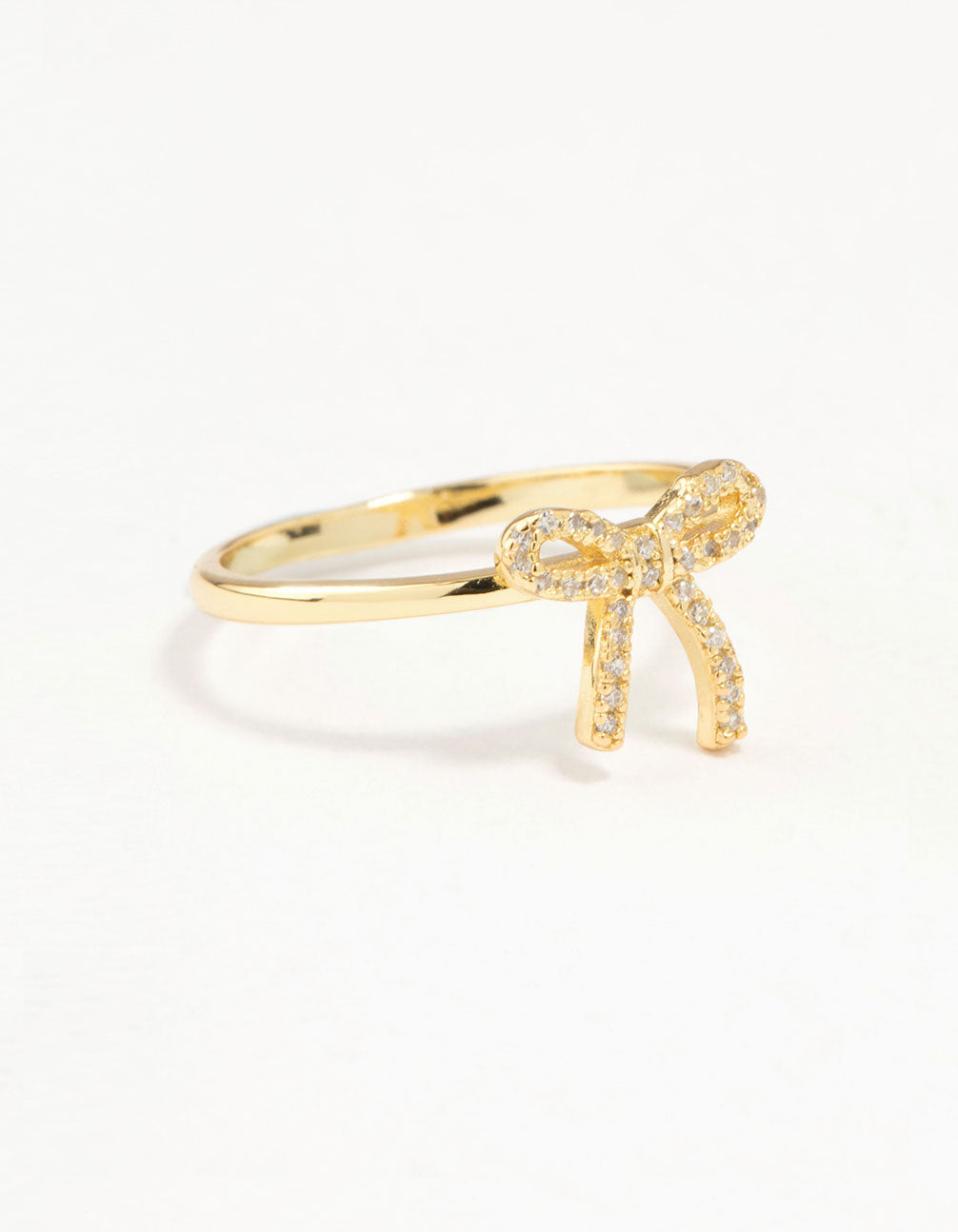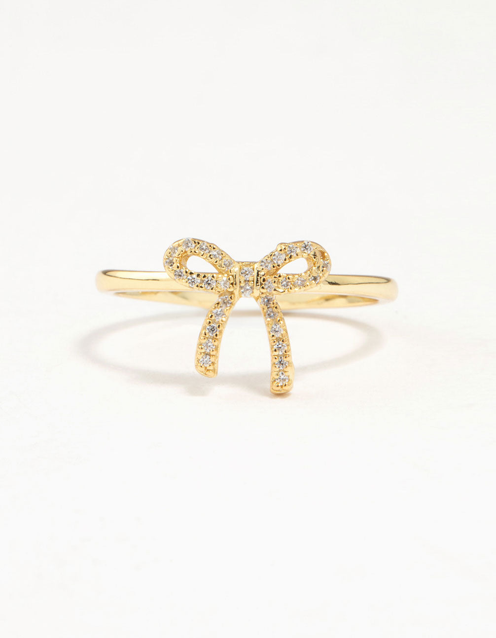 Add some fun to your ring stack with this gorgeous ring! Featuring a durable gold-plated sterling silver base and a flirty cubic zirconia bow design, it's perfect for a playful touch.