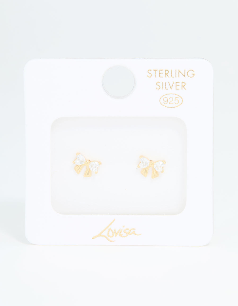 Gold Plated Sterling Silver Cubic Zirconia Bow Stud Earrings