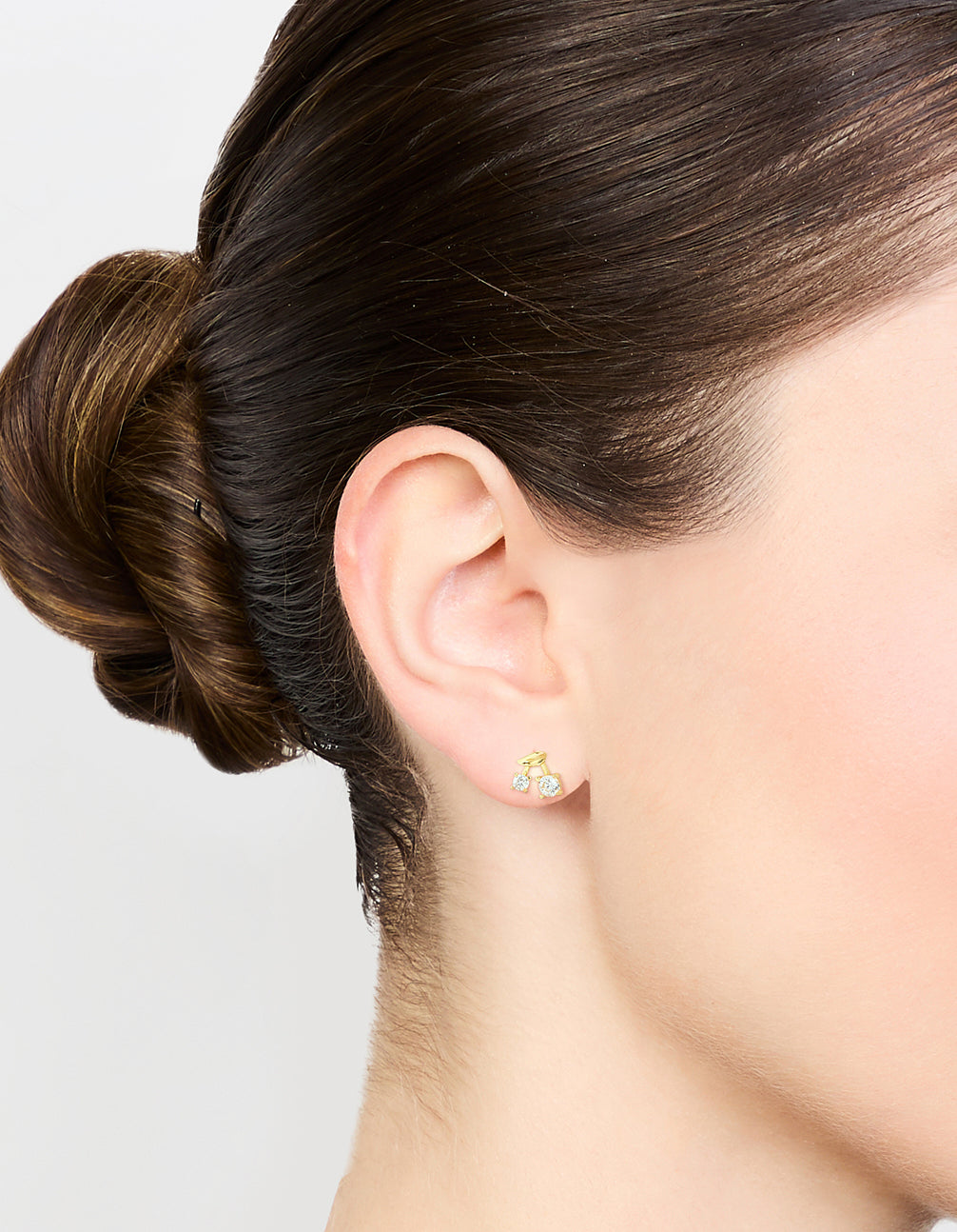Gold Plated Sterling Silver Cubic Zirconia Cherry Stud Earrings