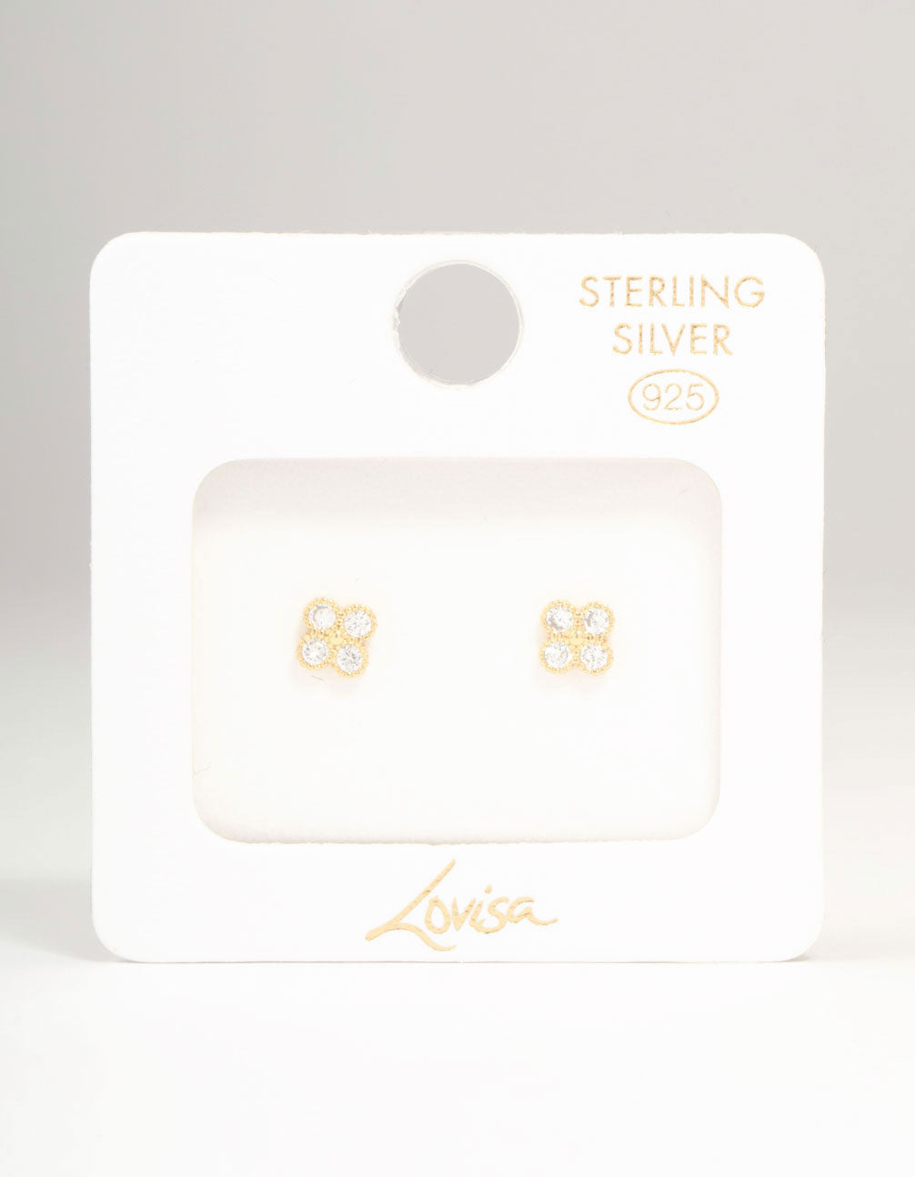Gold Plated Sterling Silver Cubic Zirconia Flower Stud Earrings