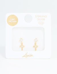 Gold Plated Sterling Silver Cubic Zirconia Cross Drop Earrings
