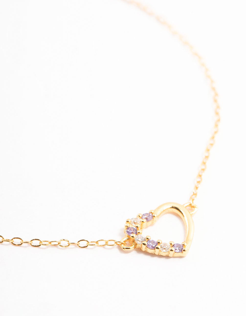 Add love to your wrist stack with this charming gold-plated sterling silver heart bracelet. Crafted with sparkling purple and silver cubic zirconia stones and a heart motif, it adds flair and romance. Perfect for stacking!