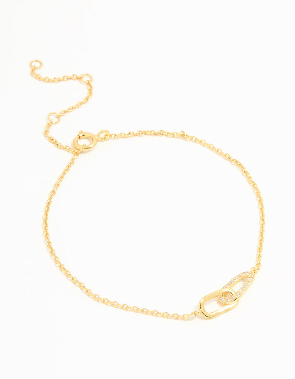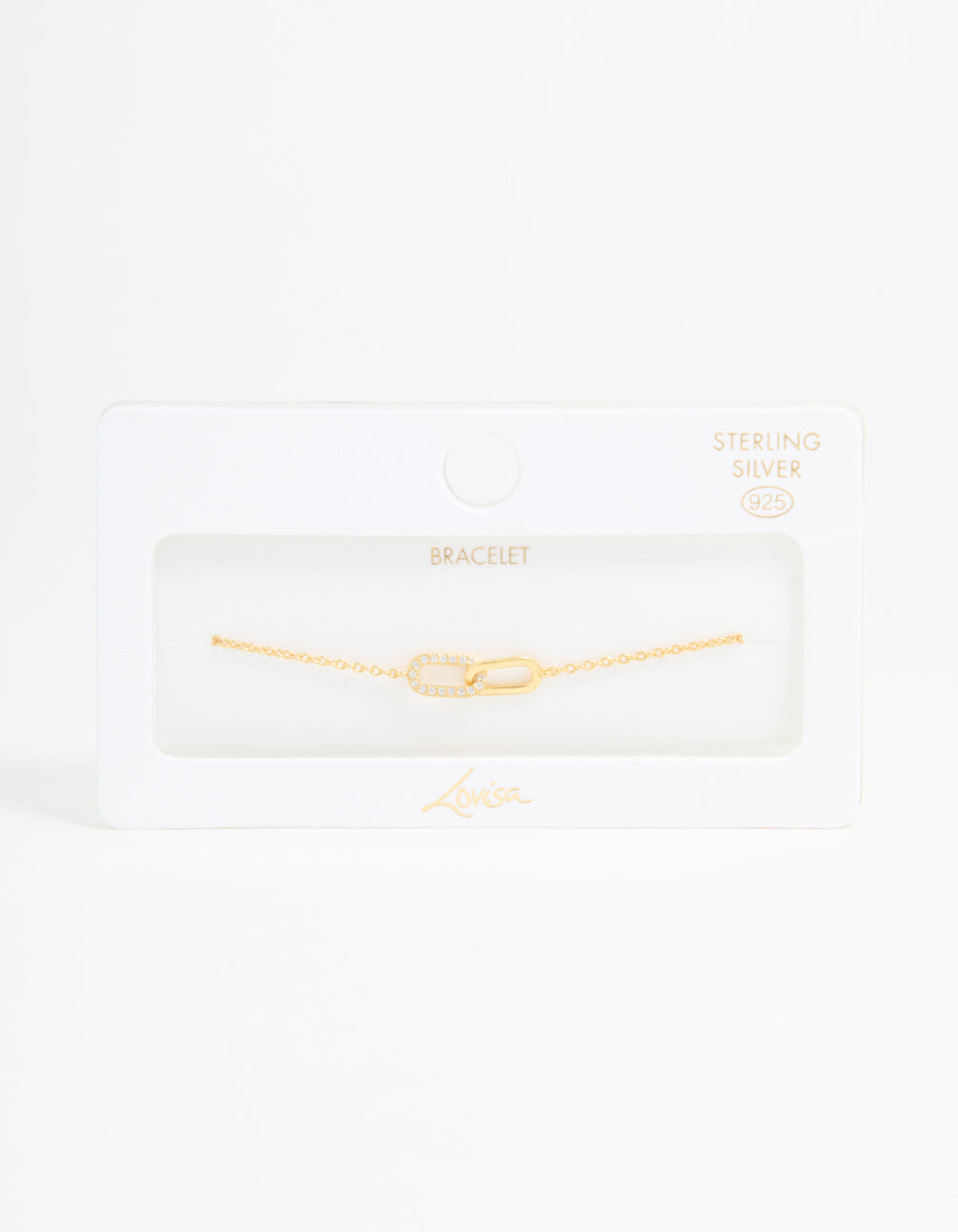 Gold Plated Sterling Silver Cubic Zirconia Link Oval Bracelet