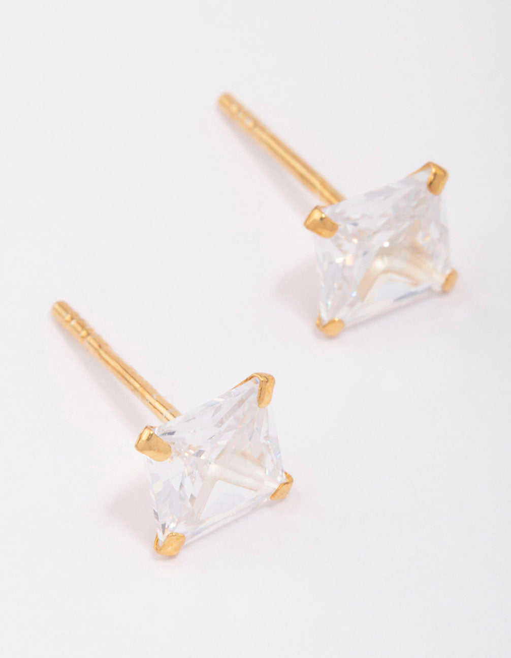 Gold Plated Sterling Silver Square Cubic Zirconia Stud Earrings 6mm