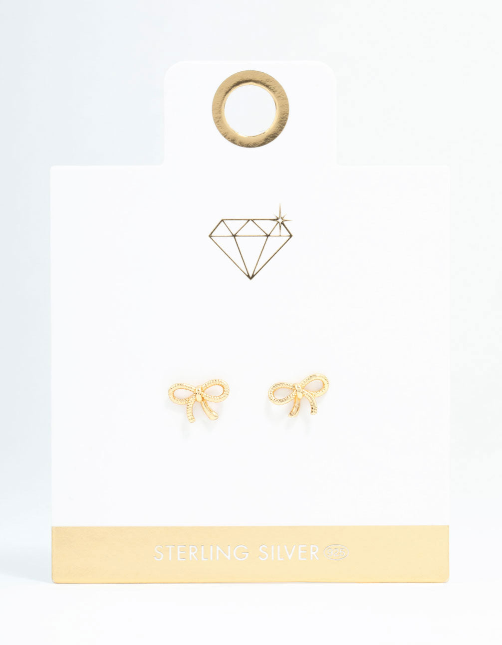 Gold Plated Sterling Silver Textured Bow Stud Earrings