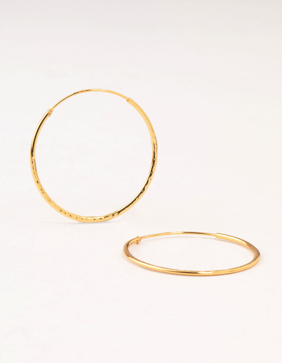 Embrace your inner IT girl with these classic effortlessly cool hoop earrings. These hoop earrings are crafted using gold plated sterling silver for a luxe but durable finish and include a subtle texture and a thin design for a lightweight but cool finish.
