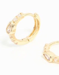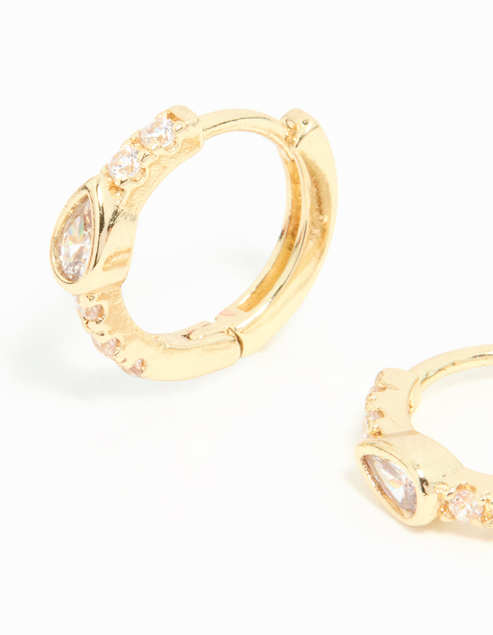 Shine bright with the Gold Plated Stone Pave Hoop Earrings, your new go-to for instant glam! These gold-plated beauties feature a dazzling pave set pear-shaped crystals.