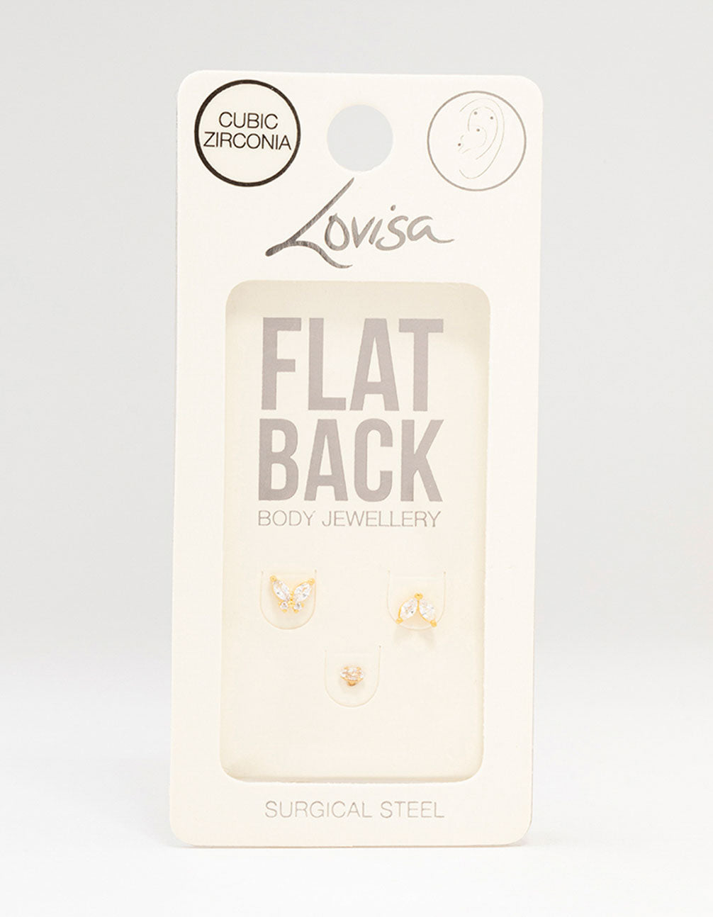 Gold Plated Surgical Steel Butterfly & Marquise Flat Back 3-Pack