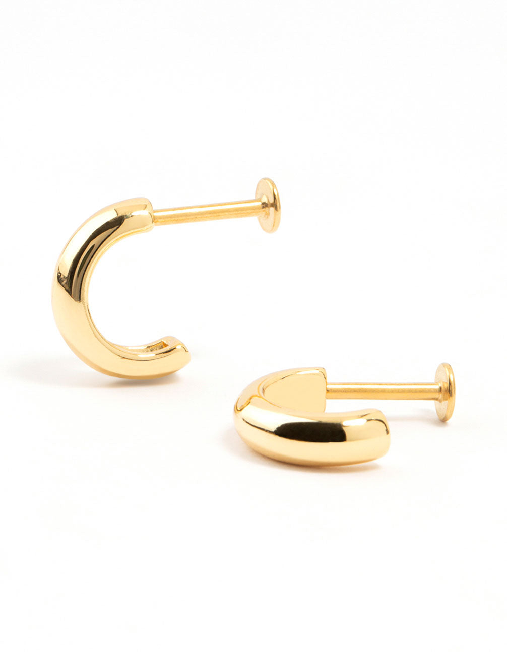 Gold Plated Surgical Steel Chunky Hoop Flat Backs 2-Pack