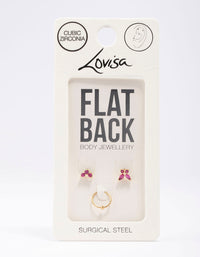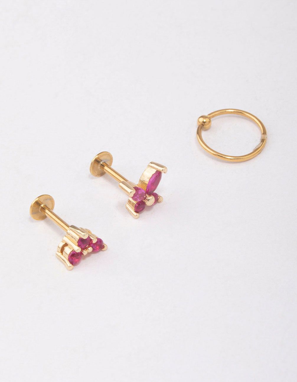 Transform your ear game with this Gold Plated Surgical Steel Cubic Zirconia Butterfly Flat Back Pack—a dazzling trio of flat back studs designed to elevate your look. Made from durable surgical steel and plated in gold, these earrings are perfect for sensitive skin and everyday wear. Each stud features a sparkling cubic zirconia butterfly, adding a playful yet elegant touch to your earscape.