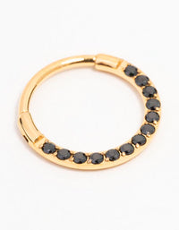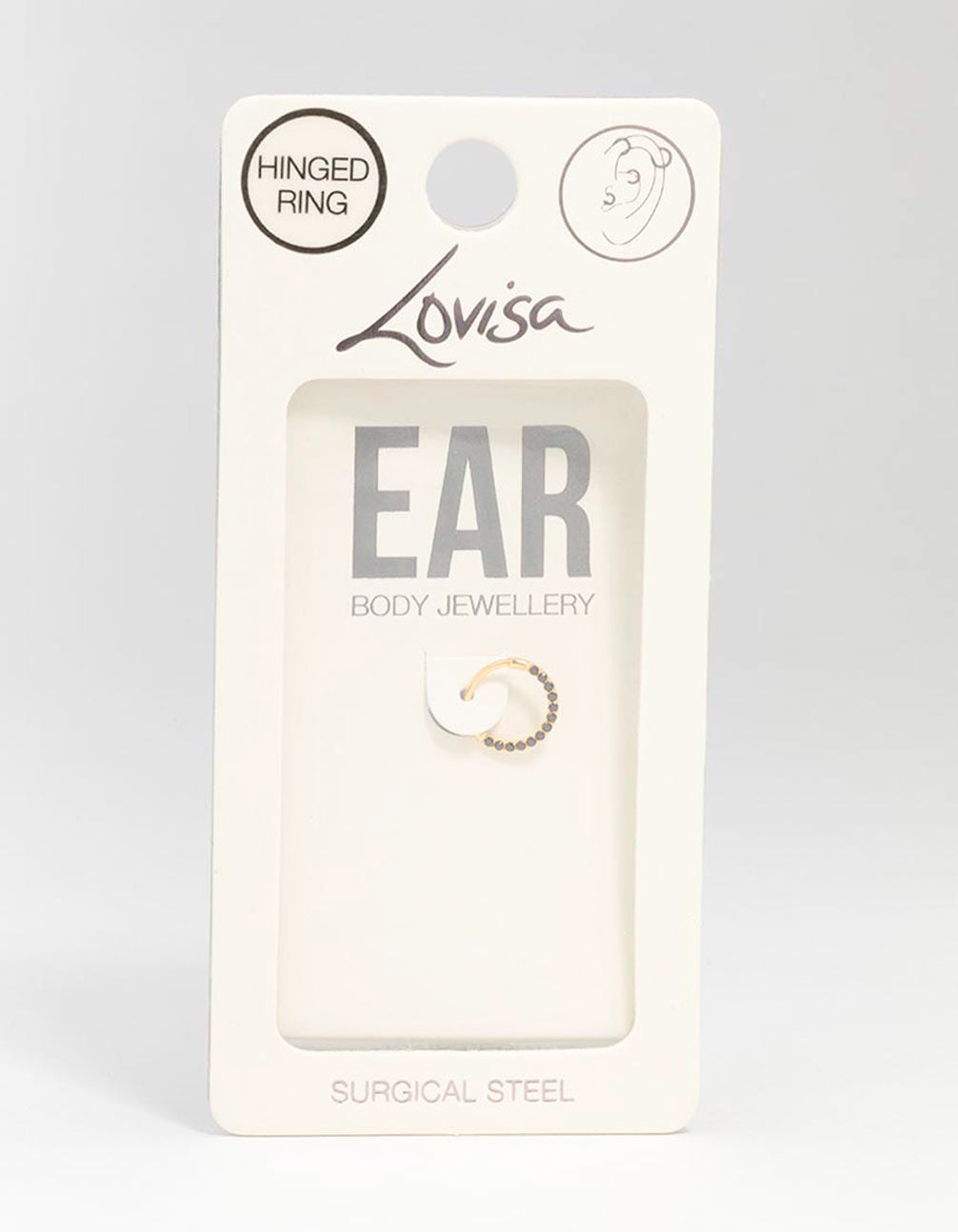 This elegant gold plated Surgical steel clicker earring features cubic zirconia stones perfect for adding glamour to your cartilage piercings. The gold plating gives it a luxurious look while the stainless steel ensures allergy free wear.